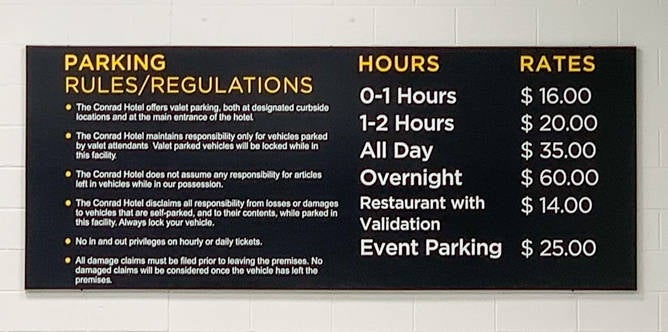 Parking, like at any city center hotel, was not cheap.