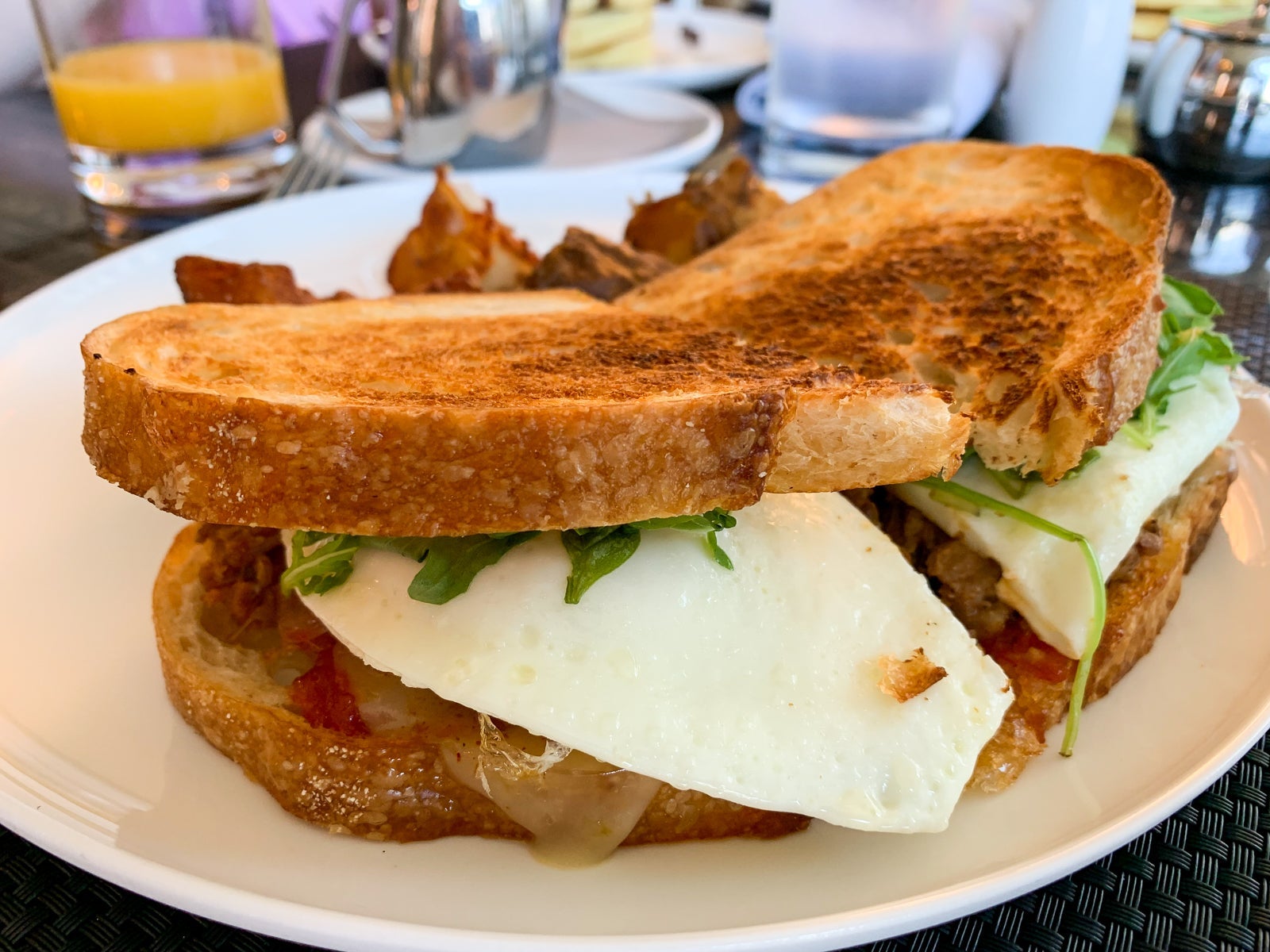 My egg sandwich with smoked pork shoulder, Jack cheese, arugula and a tomato-chile jam didn't quite fit under "breakfast classics" but was well worth the culinary gamble.