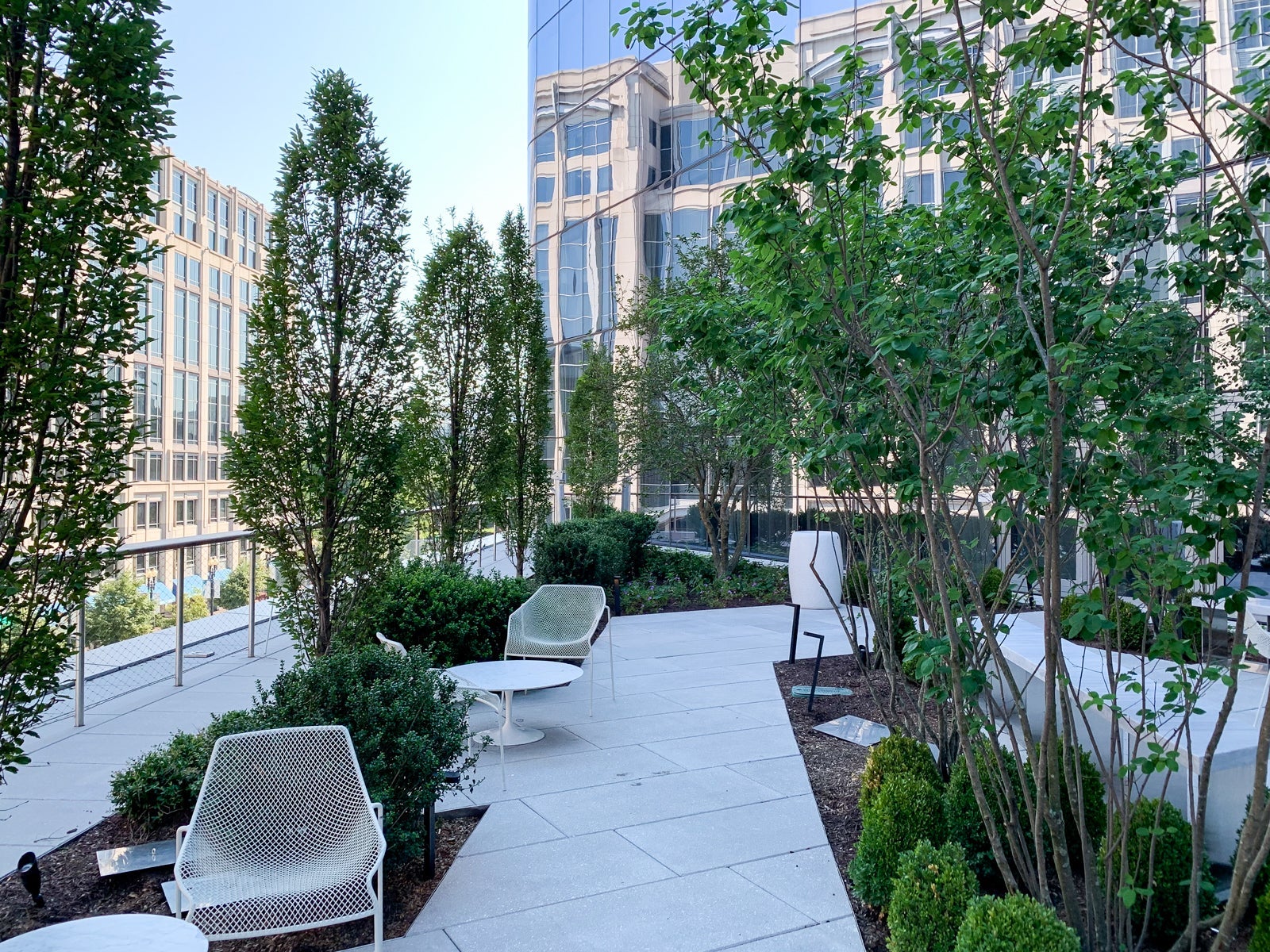 Behind the front desk was a nice outdoor patio with tables, chairs and plenty of early-morning shade. Three stories above New York Avenue, it was shockingly quiet -- a tiny urban oasis.