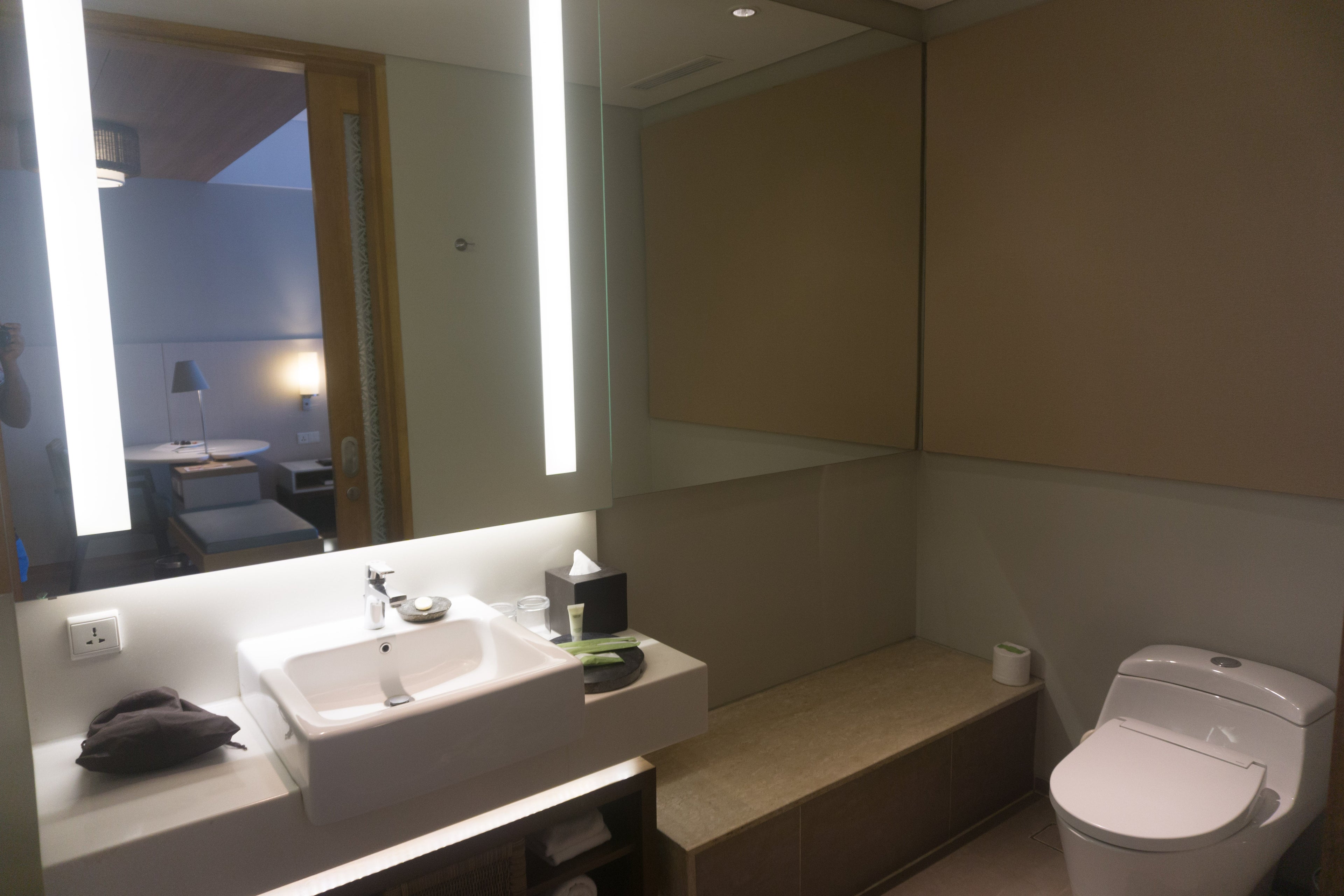 The bathroom was accessible via a sliding door, and was much more spacious than I expected.