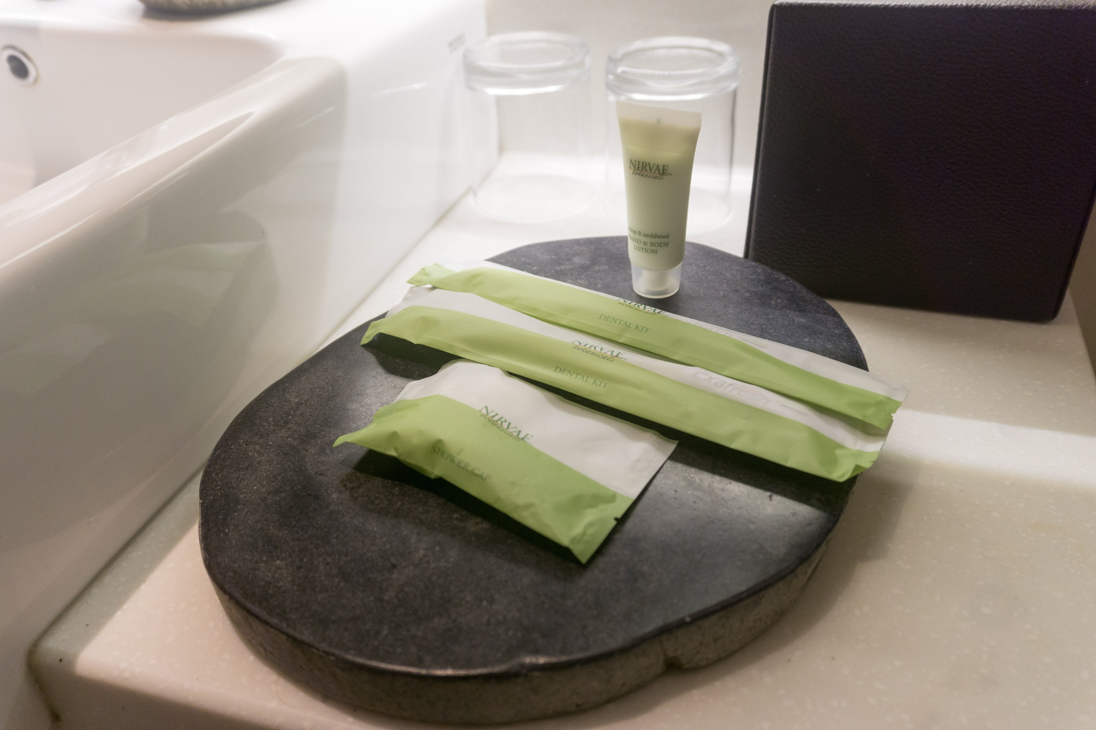 It had a large rainfall shower and decent toiletries — I actually liked them a lot better than the toiletries at supposedly higher-end Marriotts and Westins in the States.