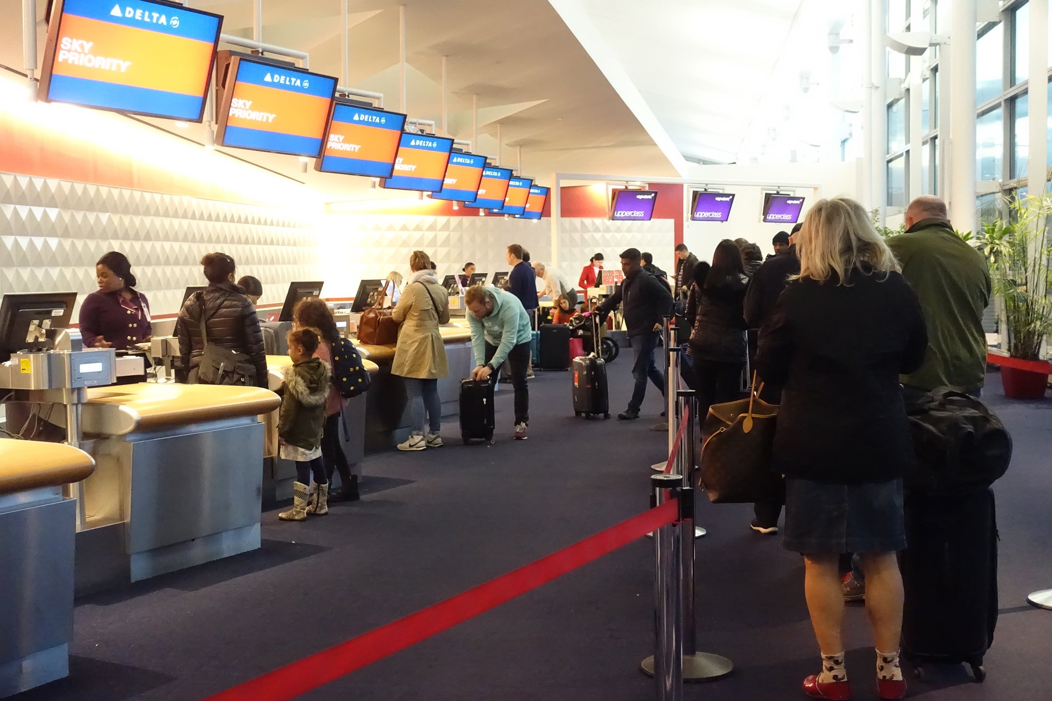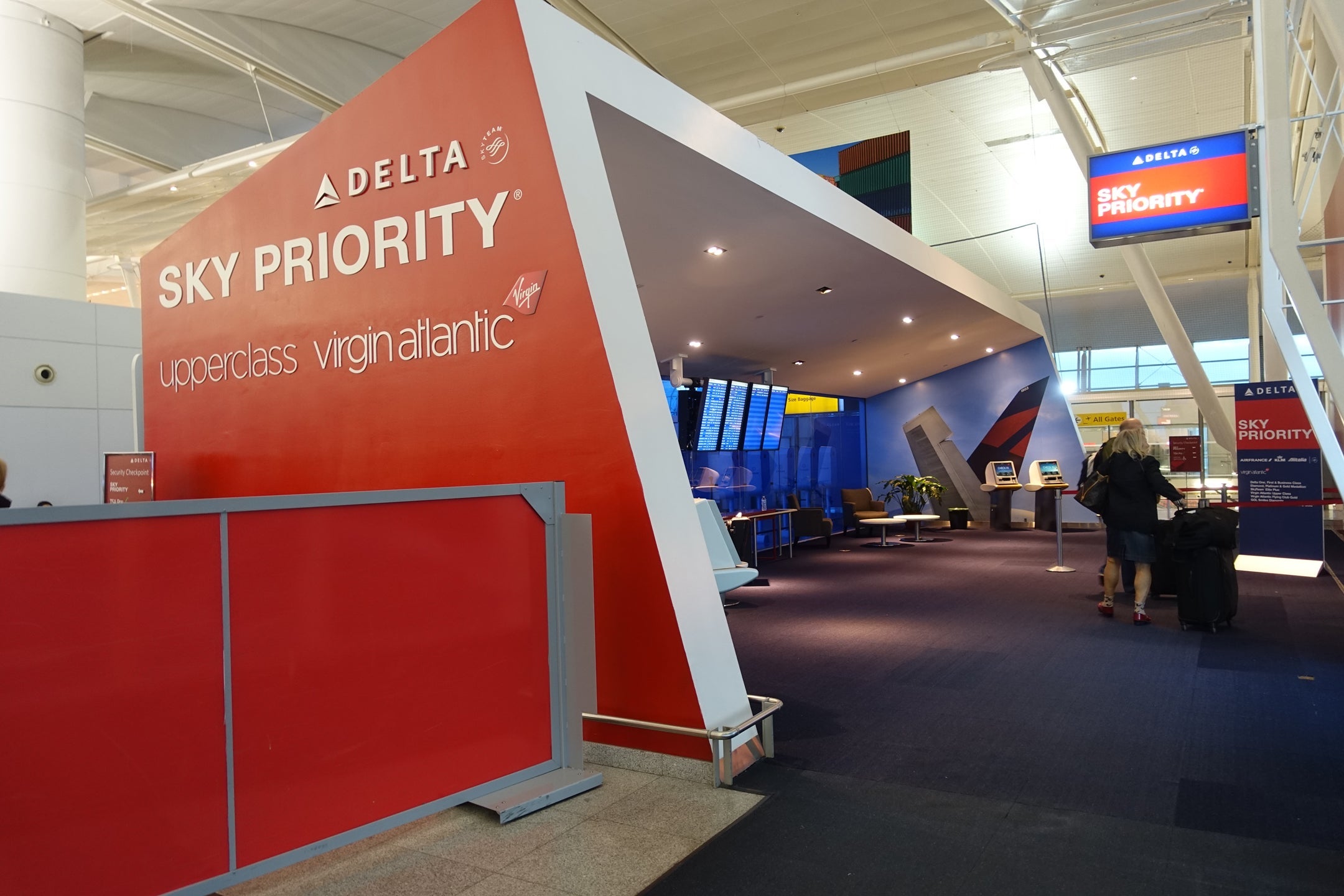 At JFK's Terminal 4, transcon business-class passengers are able to access the joint Delta/Virgin Atlantic premium check-in area, which features a small sitting area and designated Sky Priority agents.