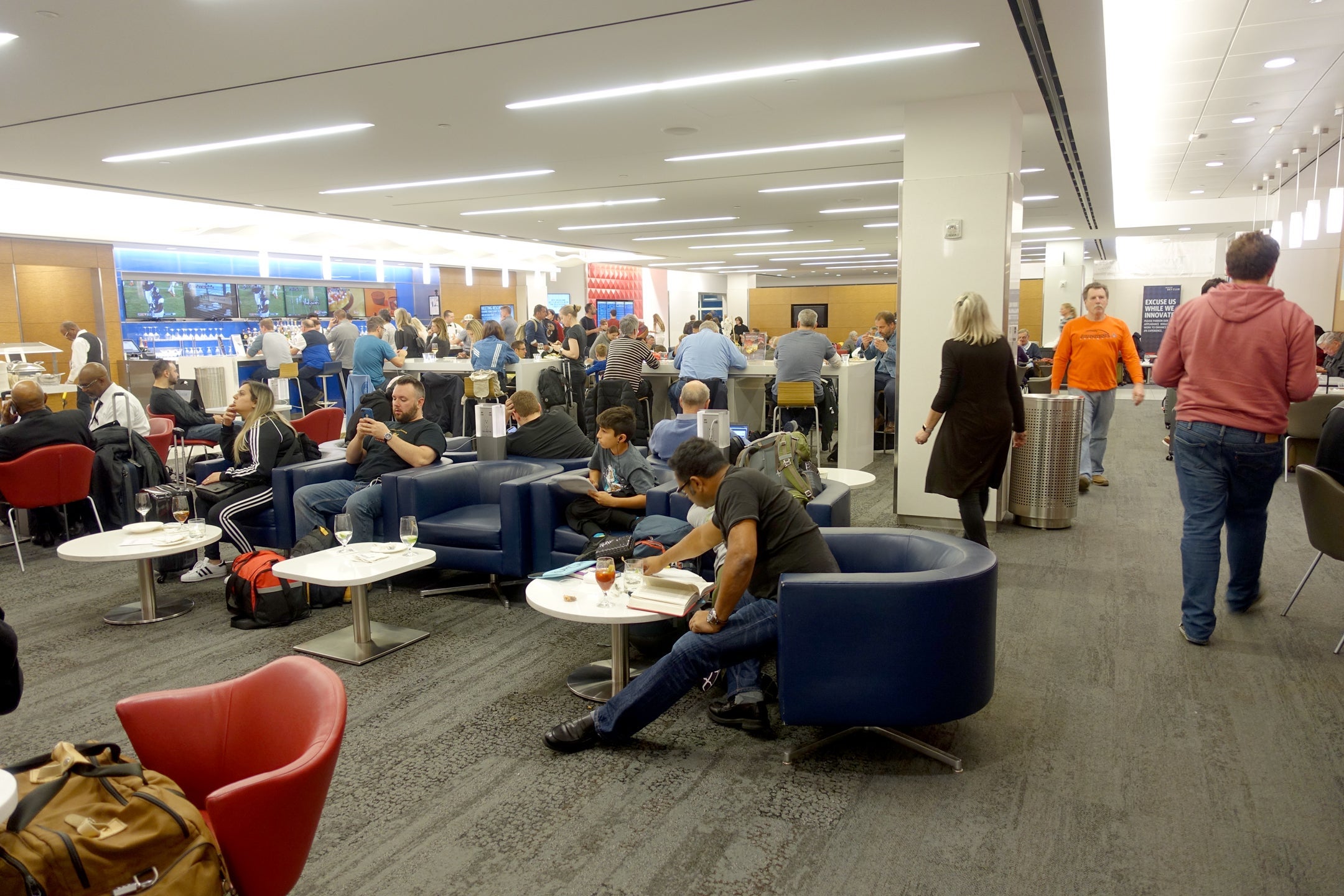 The Delta Sky Club at Terminal 4, renovated in 2013, is one of the biggest lounges in the Delta network. But it was still quite crowded, with only a few seats available here and there across every room of the club.