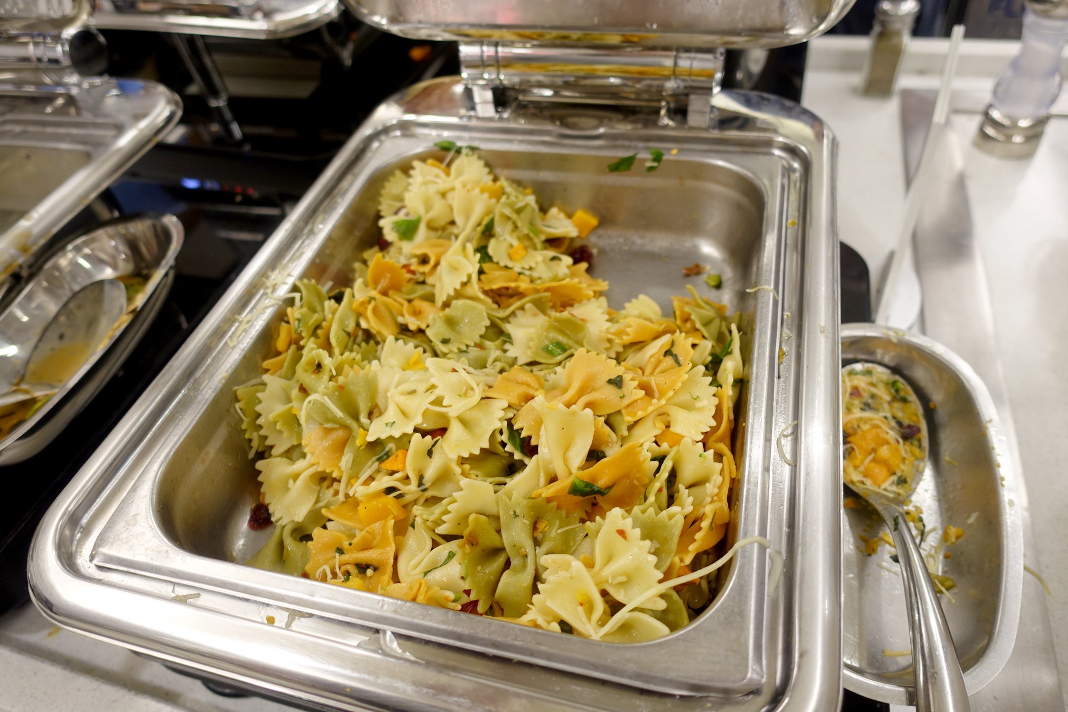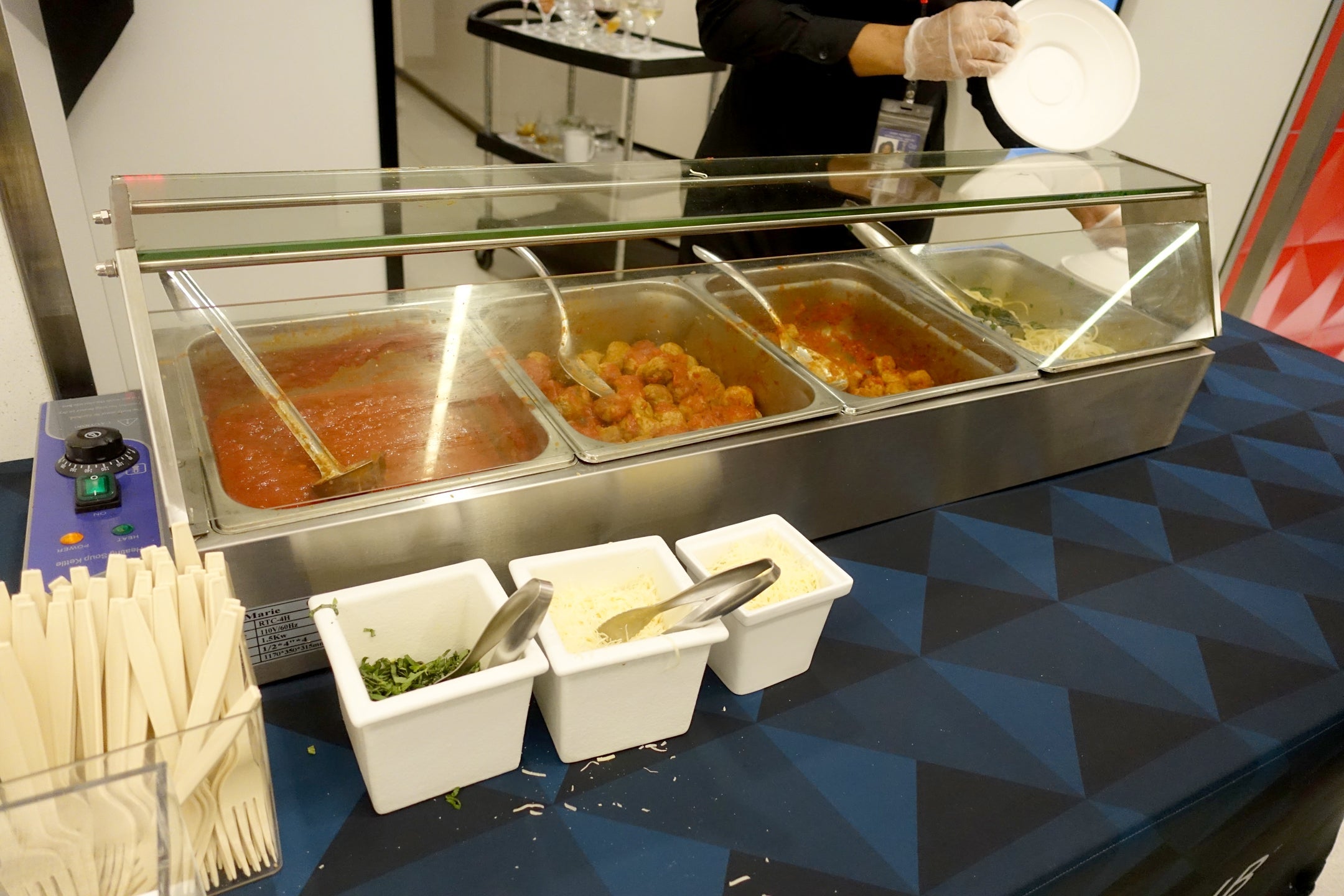 In addition to the hot foot options, you'll find a salad bar-type collection of vegetables, hard-boiled eggs and cheeses, along with bite-sized cookies and brownies. This Sky Club also offers a rotating set of specials — on the night I was there, the lounge had brought out spaghetti and meatballs.