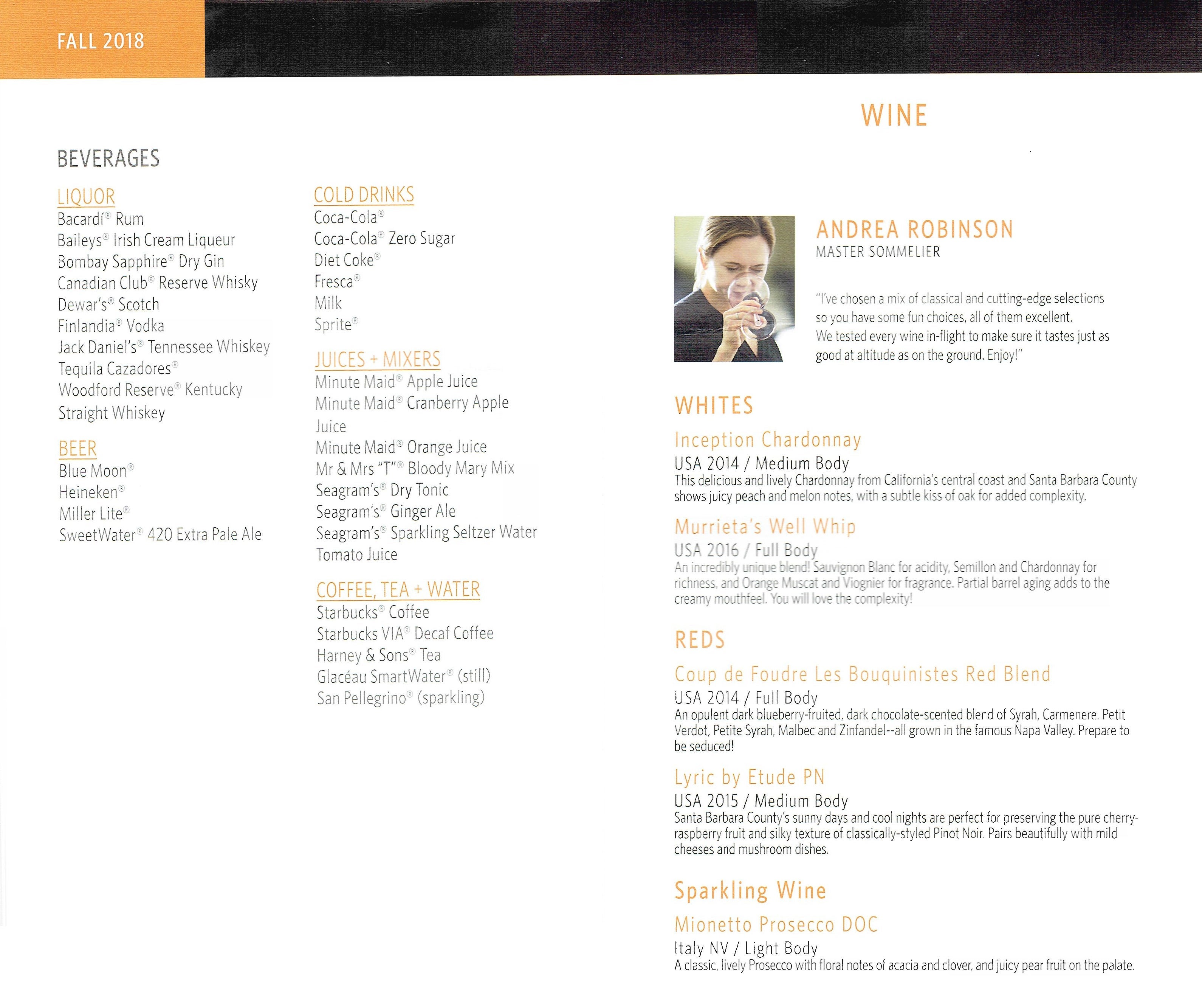 The menu also provided a full list of liquors, wines and non-alcoholic beverages to choose from.