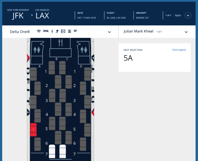 I'm generally a Delta fan, but I don't think the airline isn't putting its best foot forward with this 767 transcontinental flight, which is somewhat surprising given the heavy competition on these routes. While I wouldn't expect to see a Delta One Suite between New York and Los Angeles, I'd forgo the all-aisle access and choose Delta's 757 for a transcon over the 767 if I could — it has a 2x2 configuration but the seat is more comfortable. The carrier also currently flies one or two A330's between JFK and LAX daily, which might be the best of all your choices if it works for your schedule.