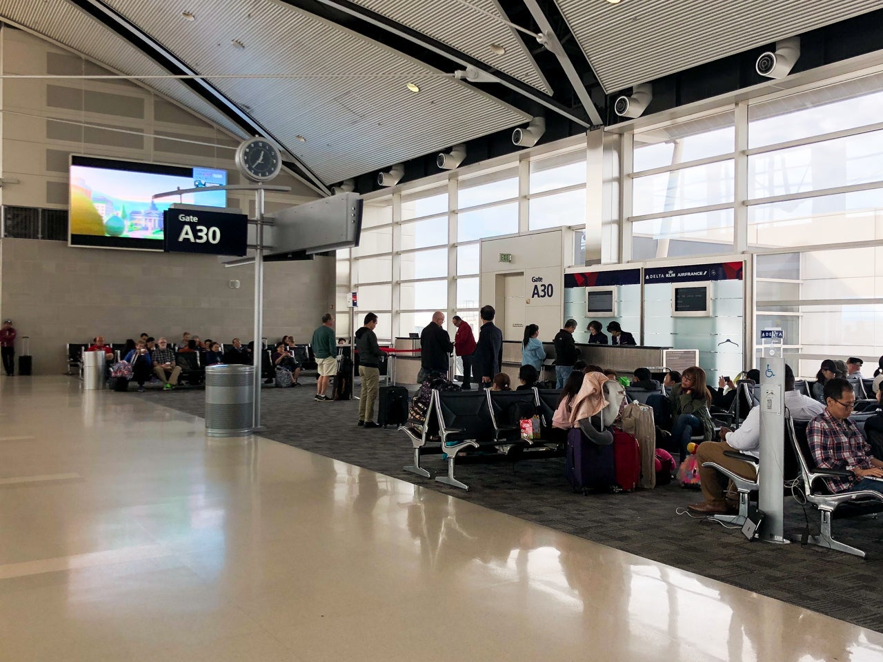 The boarding process started on time. However, leading up to boarding, gate agents were continuously calling up passengers for passport verification or to check visas. Gate agents could be heard several times calling passengers who were connecting to Vietnam or Cambodia to present their visas or be denied boarding — it sounded like it was an ongoing issue.