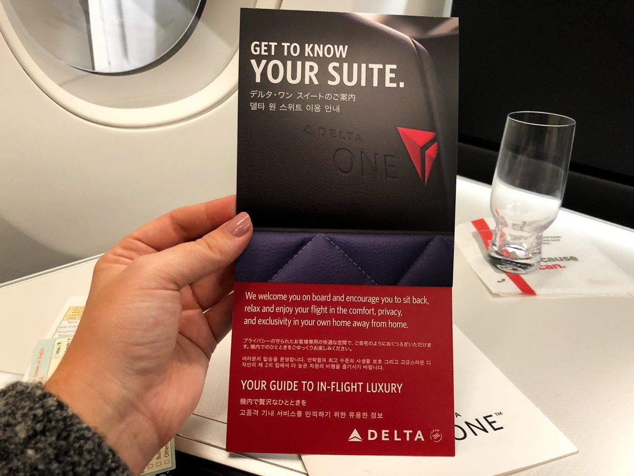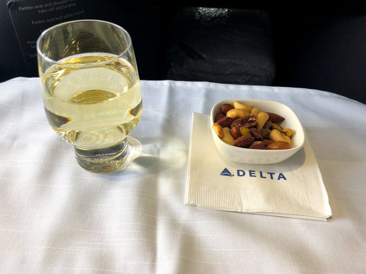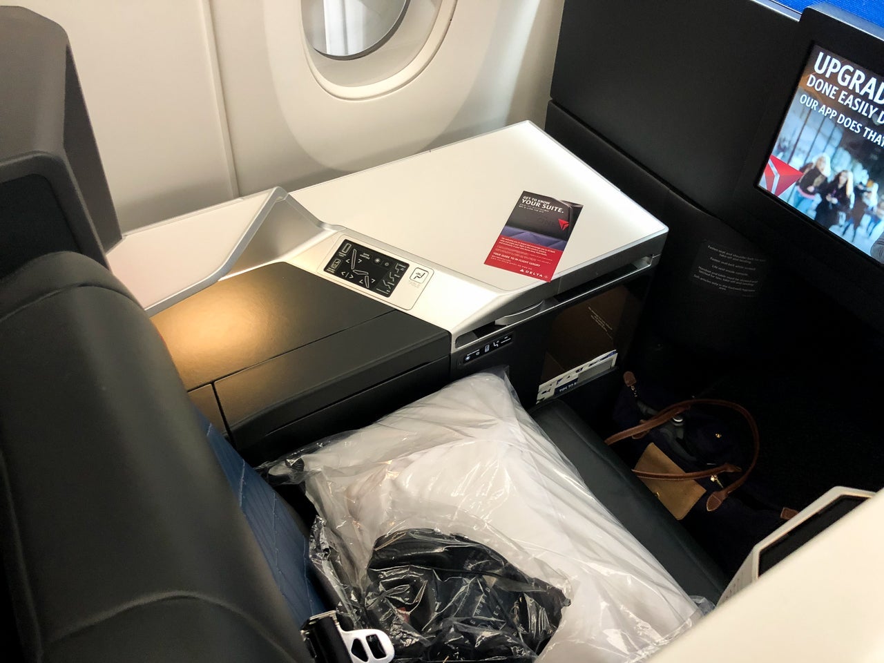 About two minutes after I'd moved the linens to the side table and taken my seat, a friendly flight attendant came to introduce herself. She asked if it was my first time flying Delta One, which it was.