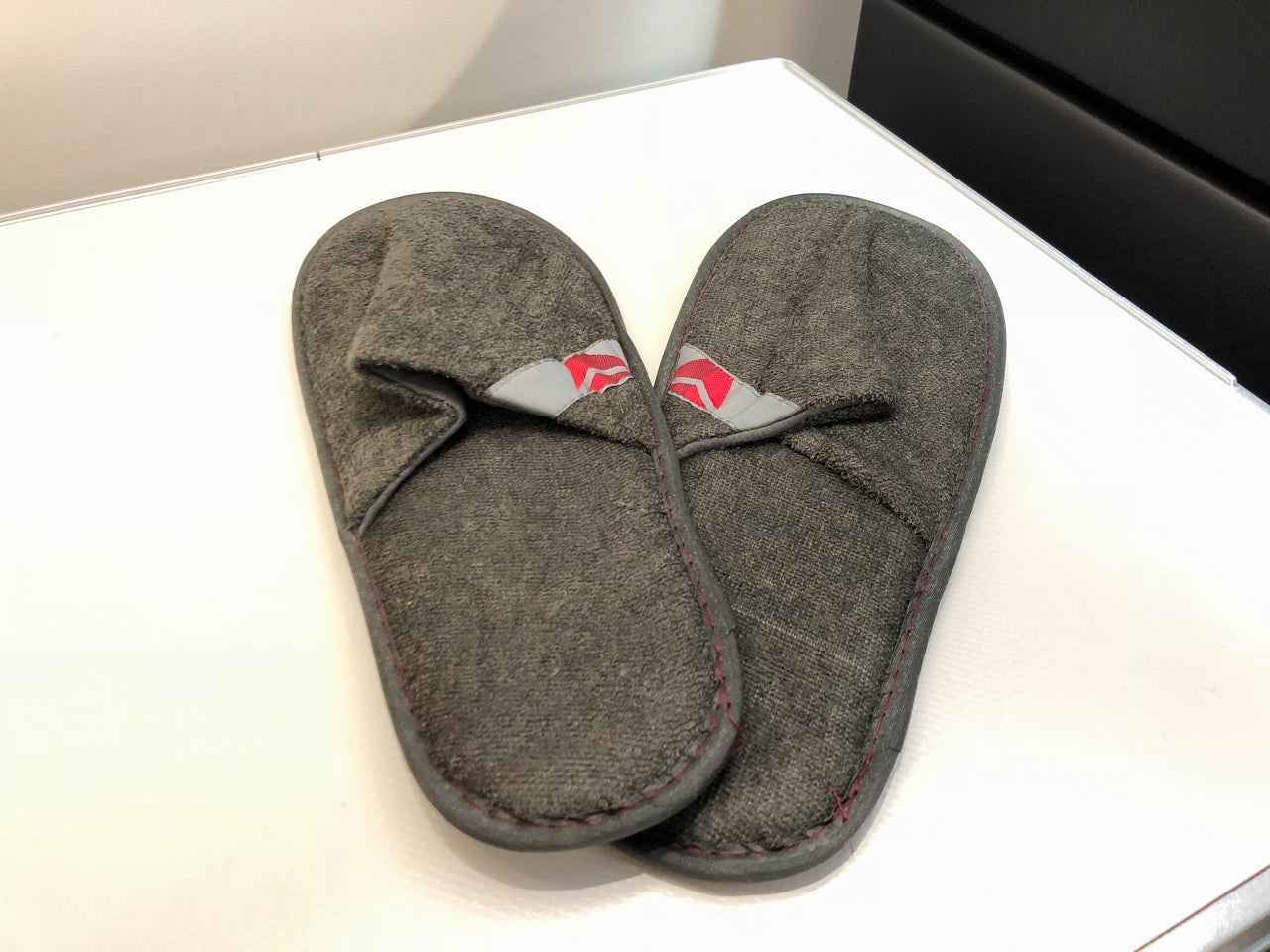 I didn't have the amenity kit on my seat upon boarding, but I did have a set of Delta-branded slippers. The slippers were pretty standard and closed-toe.