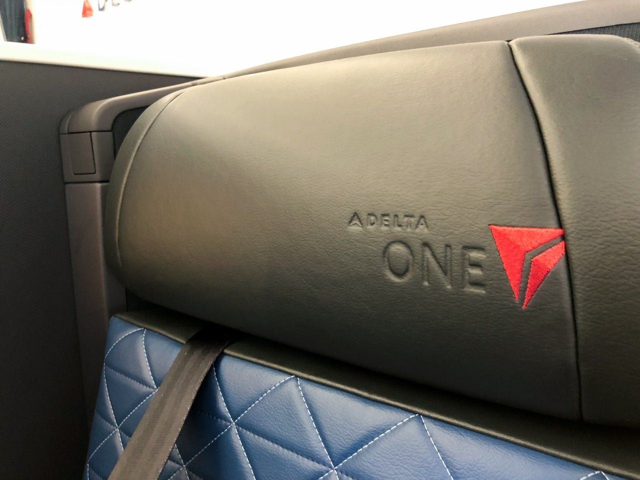 By far, the highlight of the hard product's design was the stitching on the seat. The colors, a mix of Delta's signature blue and red, as well as a black headrest, made the seats look crisp and nicely finished. The white stitching against the blue upholstery was easy on the eyes. Plus, the seat itself was comfortable. And, once in its lie-flat position, the rear of the seatback was covered in a fabric as opposed to straight plastic finishing, making for a much more comfortable experience.