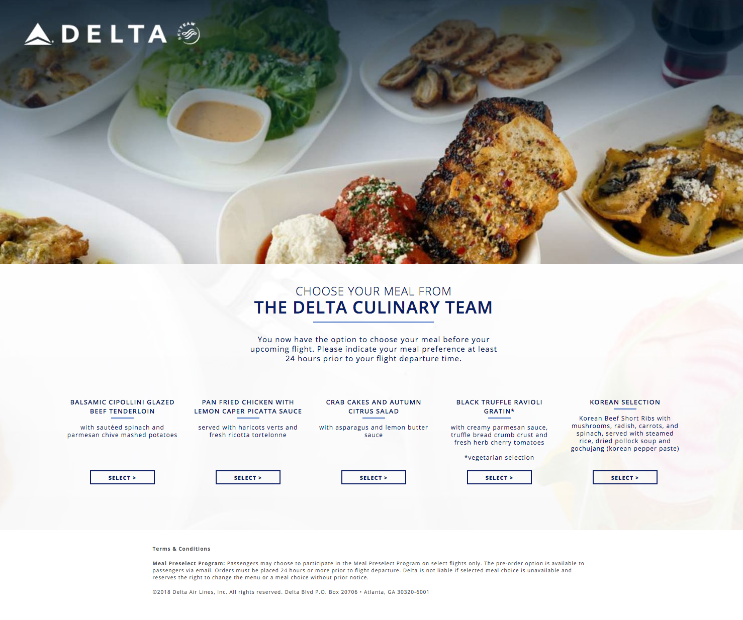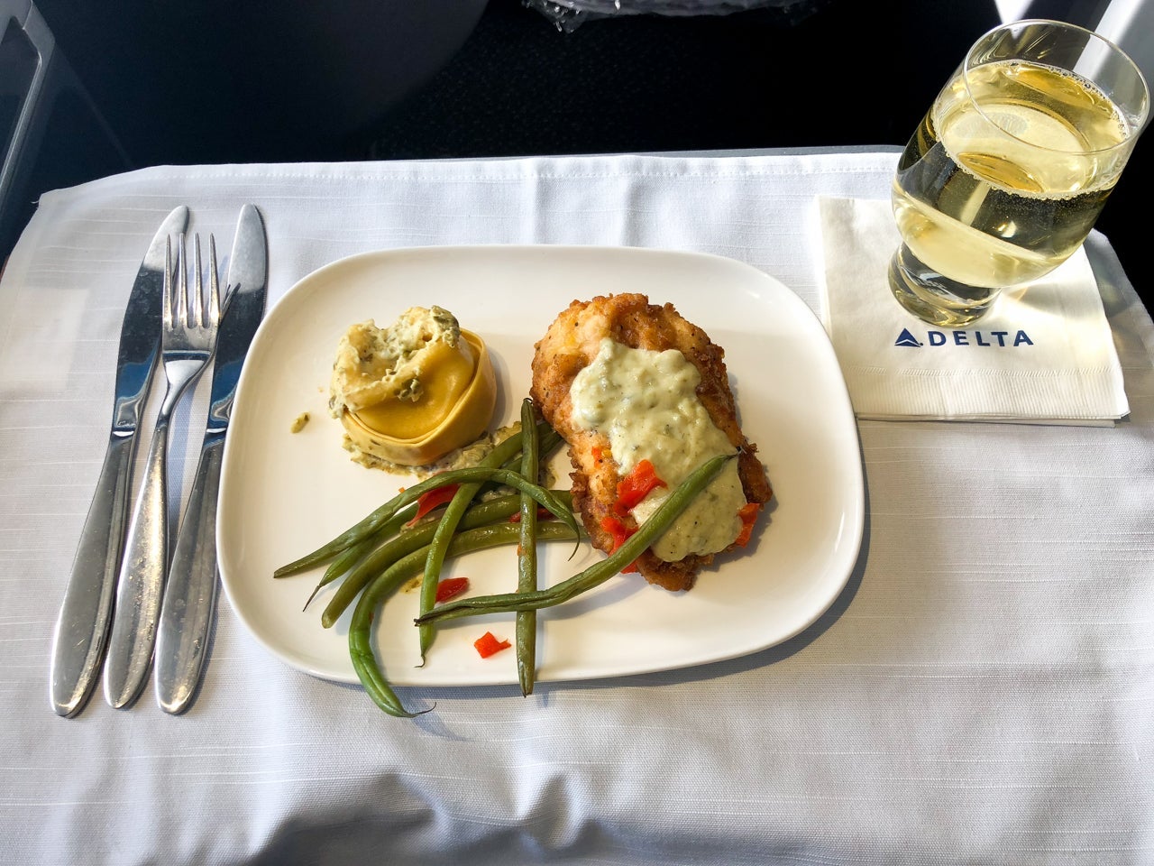 Menus were distributed to passengers prior to leaving the gate. However, I took advantage of Delta's order-in-advance service to ensure that my choice wouldn't be gone — especially with having a seat at the rear of the cabin. Up to 24 hours prior to departure, Delta One passengers on select international routes can choose their meals online. I selected the pan-fried chicken with lemon-caper picatta sauce, which was confirmed immediately.