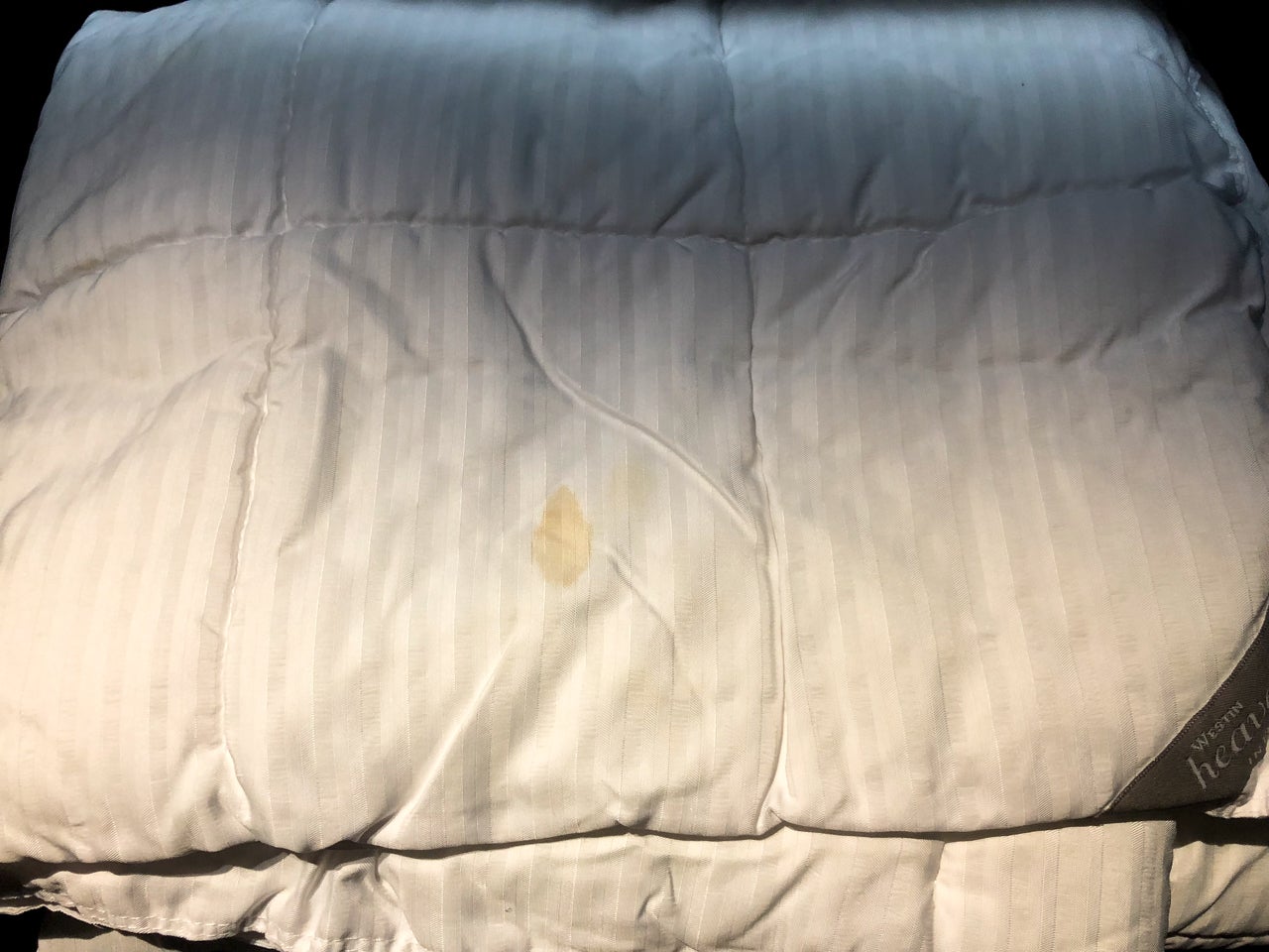 As mentioned, upon boarding, each of the seats was outfitted with a set of Westin Heavenly bedding. There was no turndown service, but I found the bedding itself to be very comfortable. That being said, my duvet was a bit on the worn side. There were noticeable stains on the blanket, which all happened to be in the same vicinity. I understand that the blankets are reused, but it would have been nice to have one that didn't show general signs of wear and tear.