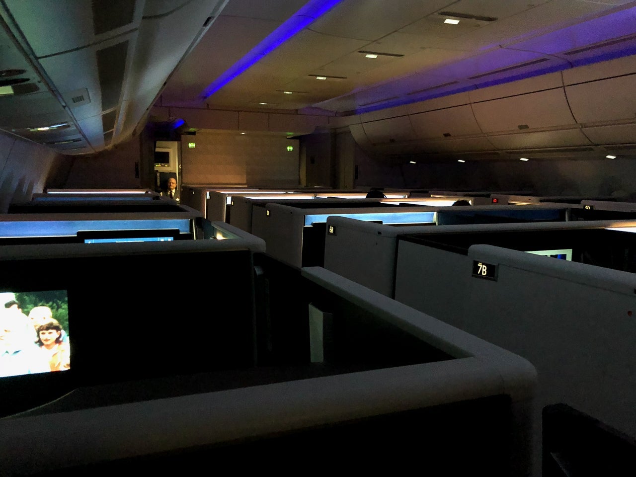 The inflight-entertainment screen itself was decent in size (18 inches) and offered a great picture. Plus, I really enjoyed the look of the IFE screen within the suite, as it was outfitted with a lit blue strip above it.