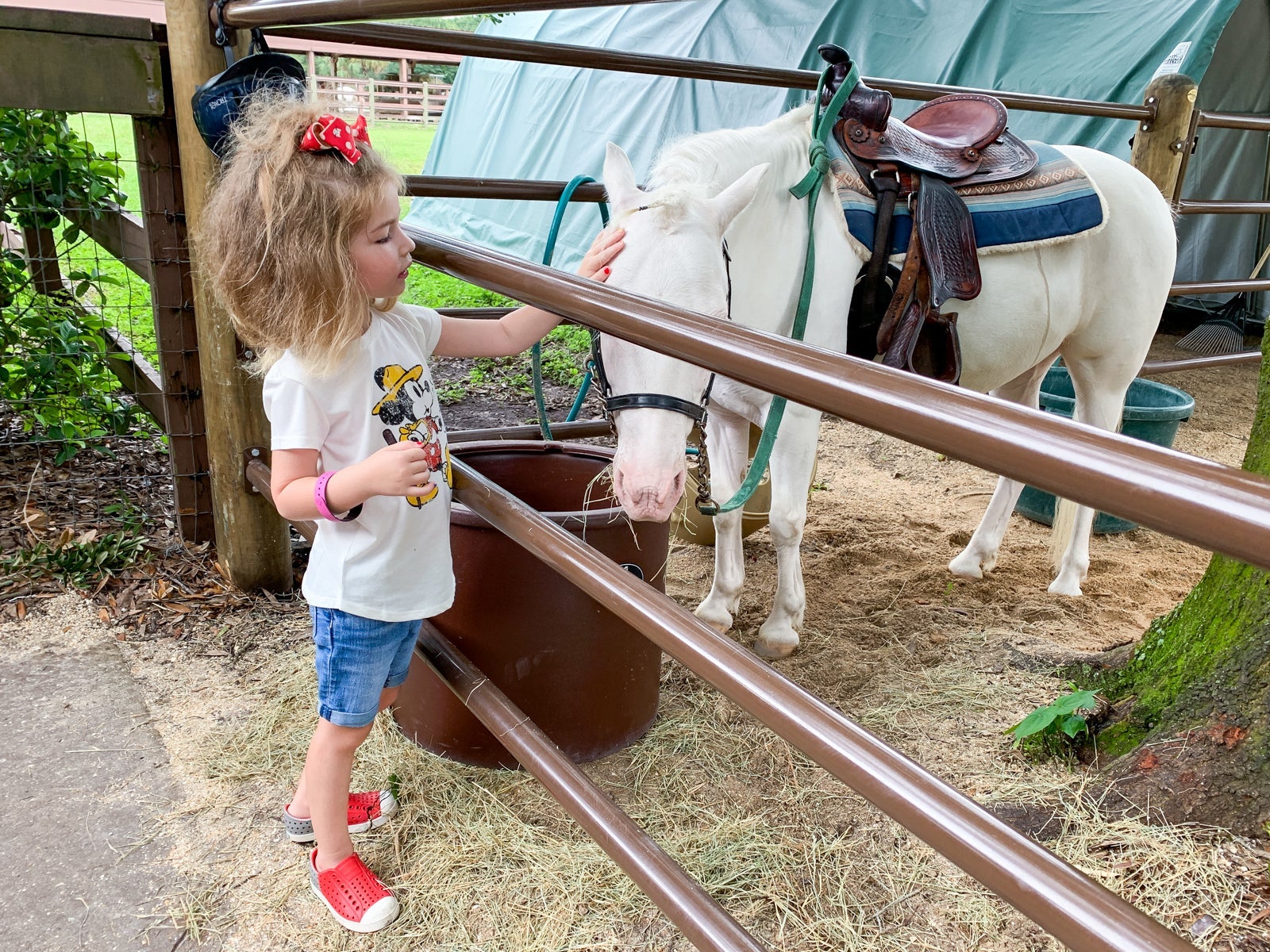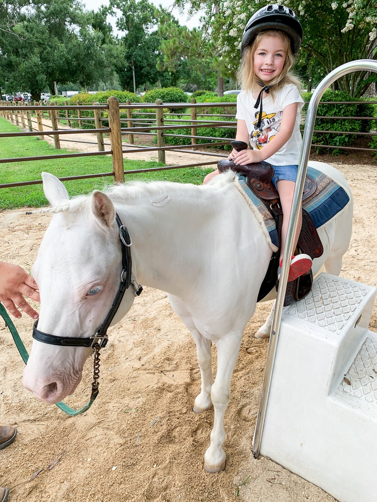For younger riders, ages 2 and up, you can take a parent-led pony ride around a short trail. Our youngest did two sets of rides ($8 for one lap or $12 for two) and both times she scored one of Cinderella's white ponies, which was a hit. Pony riders must weigh less than 80 pounds and measure under 48 inches tall.
