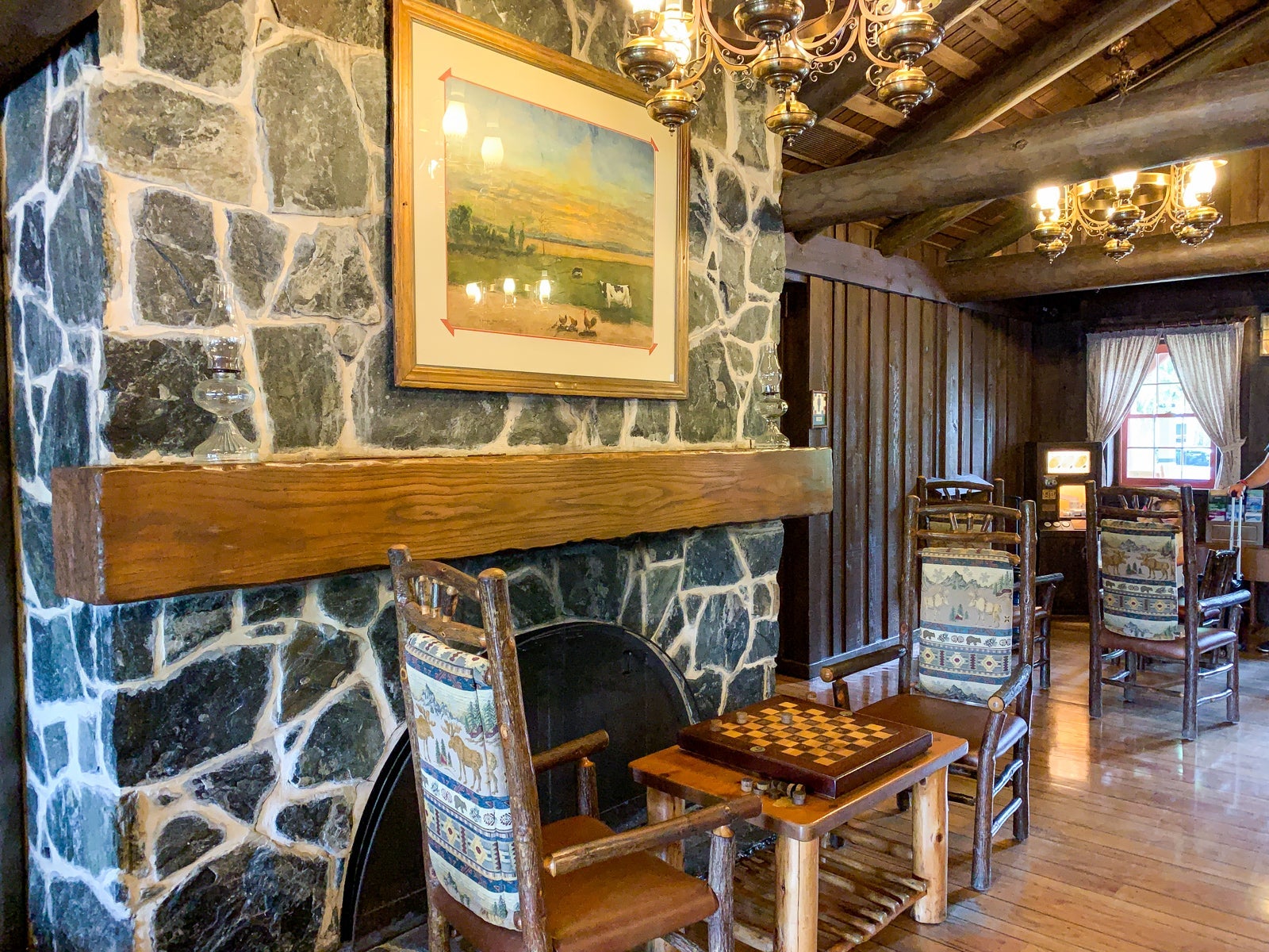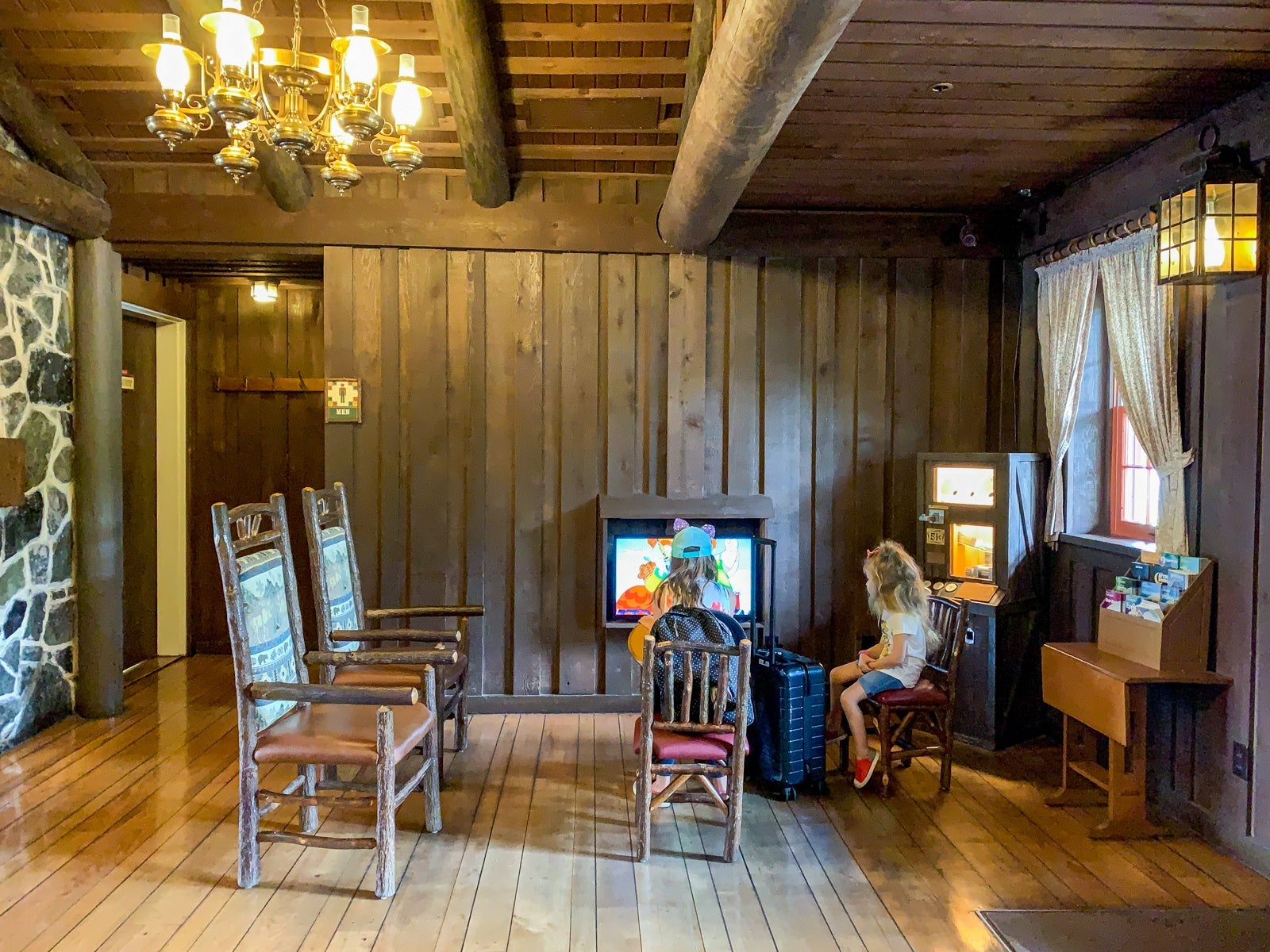 Our stop at Fort Wilderness was first on the route and we were dropped off right at the check-in area, complete with a fireplace and cartoons. We arrived about noon, well before the stated check-in time at 3pm, so we weren't surprised that a cabin wasn't ready. However, our wait was cut short when we got a text, about a half hour later, that our cabin was ready.