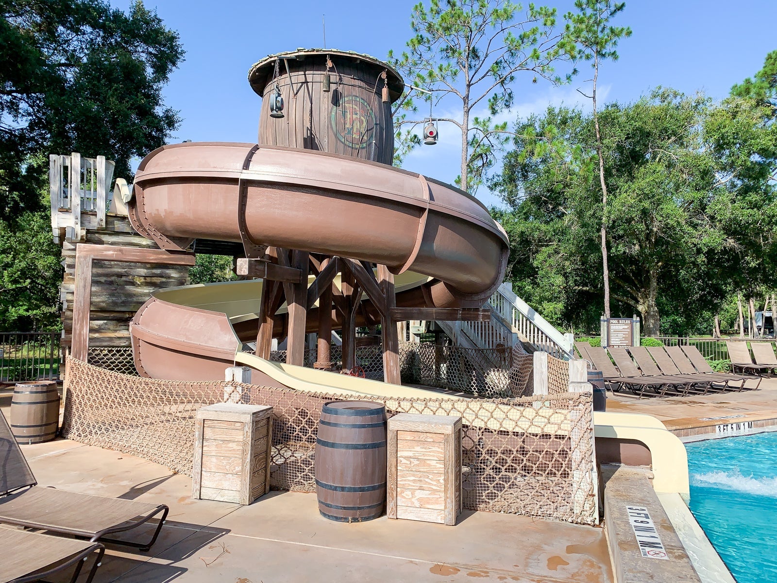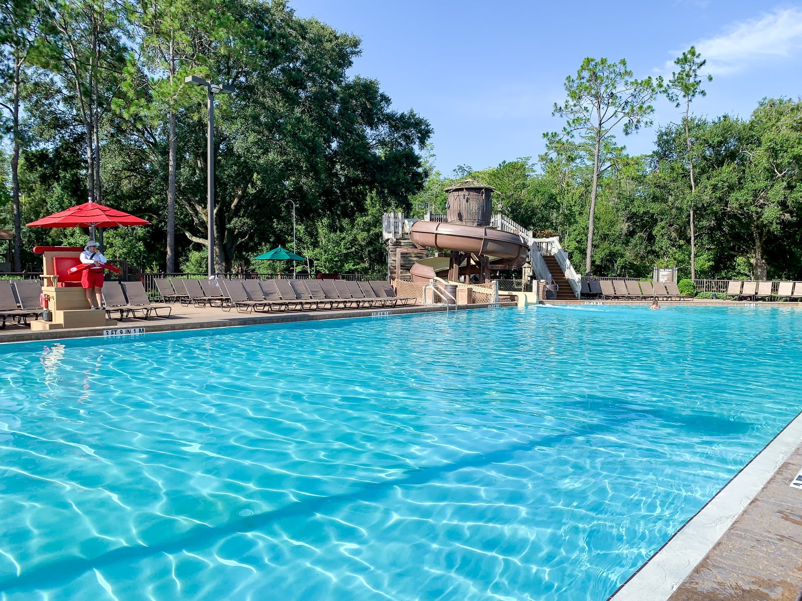 Because folks stay here longer, resort amenities here heavily used. There are people piling into the two pools when they open at 9am and people still taking runs down the slide at the larger of the two pools when it shuts down for the night at 11pm.