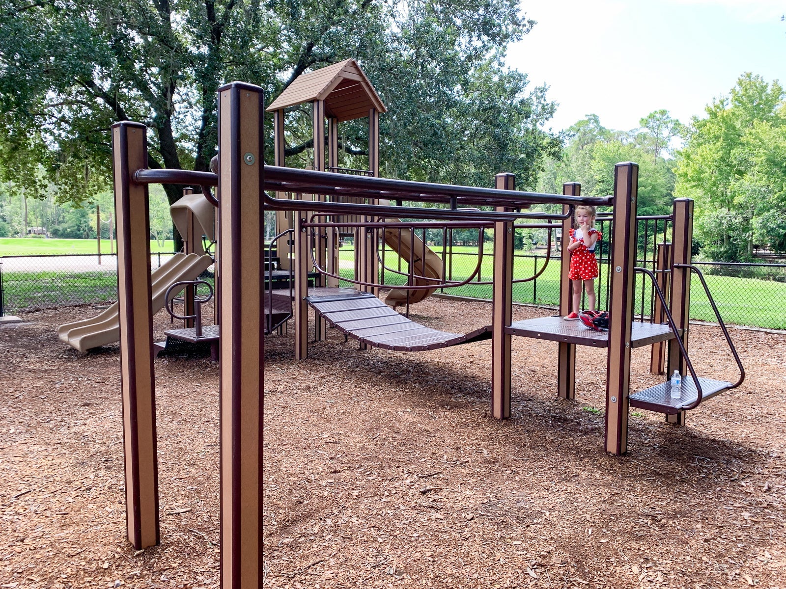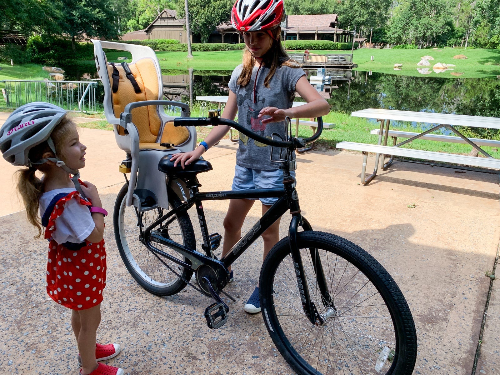 We rented bikes ($11/hour or $20 per day) to visit three of the many playgrounds at the camp. Being able to rent bikes, with included helmets and even child seats, was handy and fun, but the bikes seem to be stored outside and weren't in the best shape, so don't expect a shiny new bike for that price.