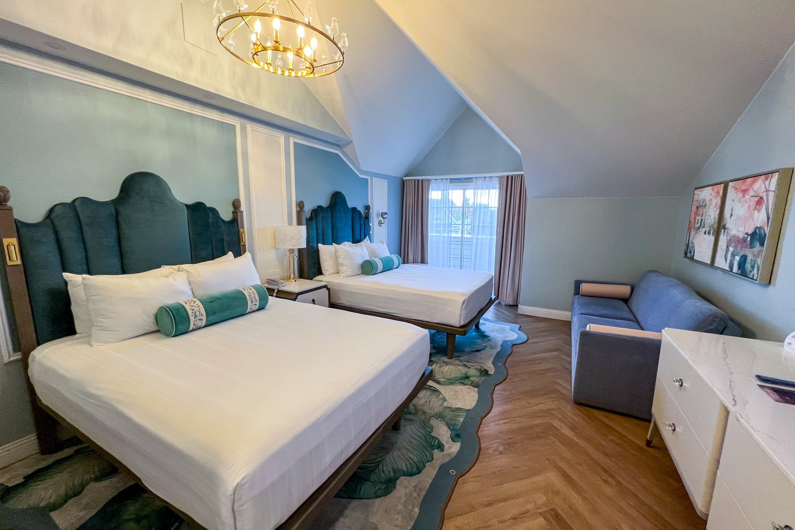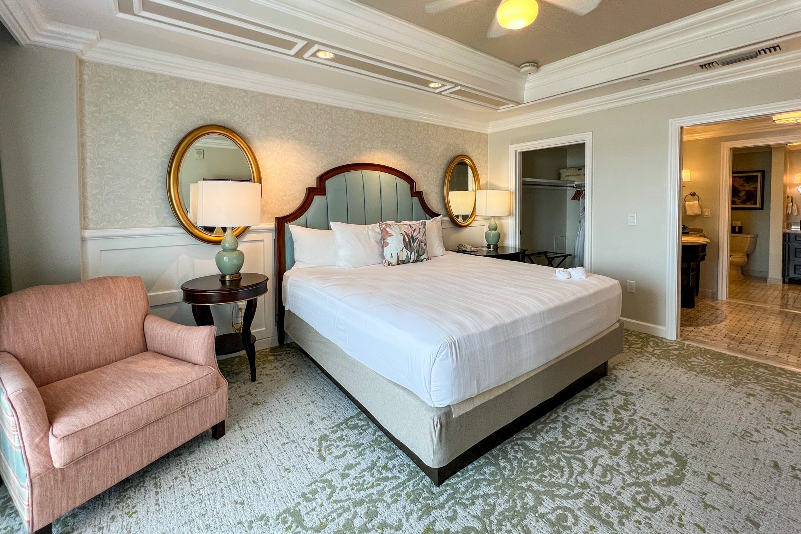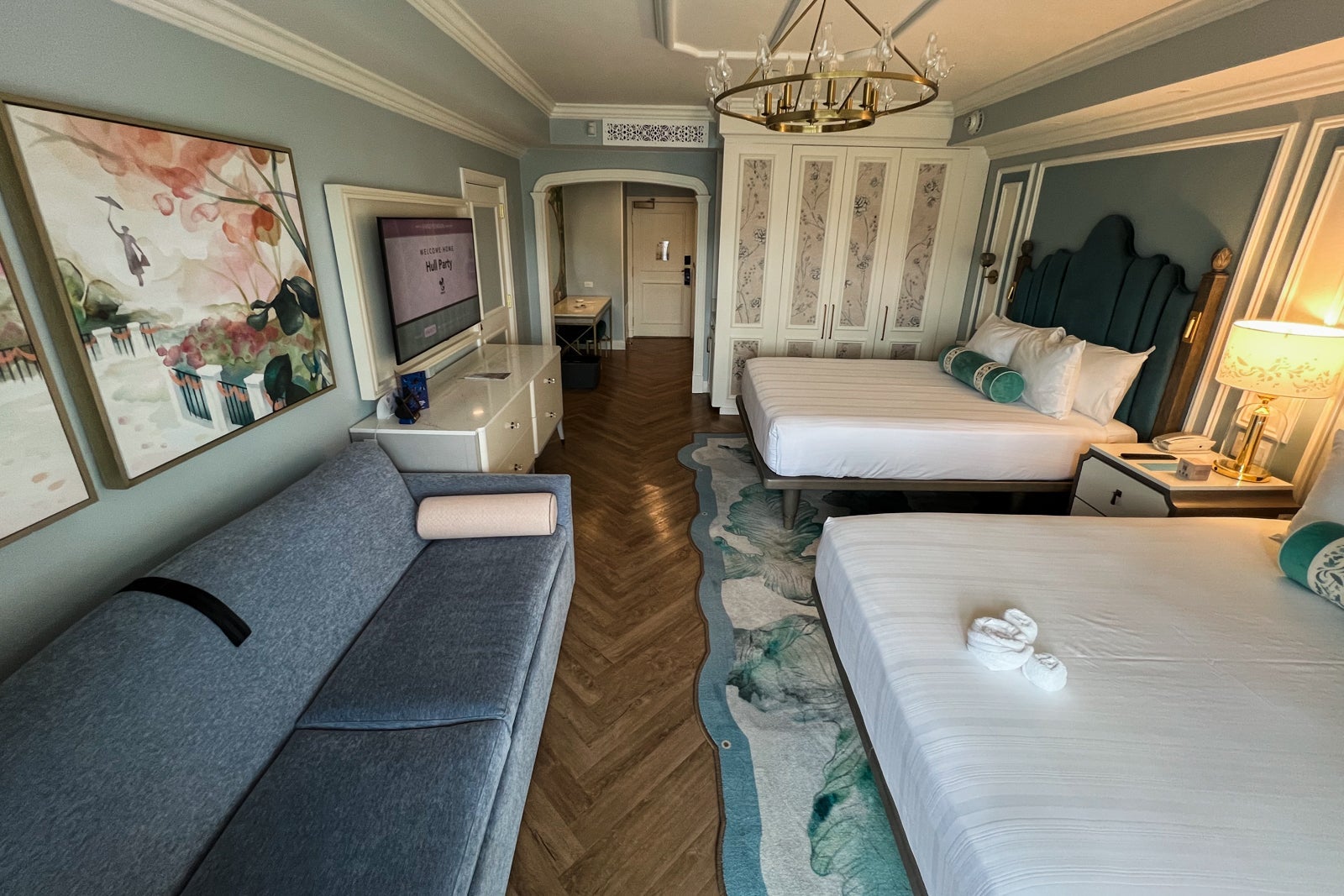 The Grand Floridian's standard rooms and studios, measuring around 440 square feet, feature a light "Mary Poppins" theme that emerged in the 2022 renovation. These are the largest standard hotel rooms available at Walt Disney World. However, this extra space (and close-to-Magic Kingdom location) comes at a cost, as the rooms are consistently among the most expensive options at Disney World.