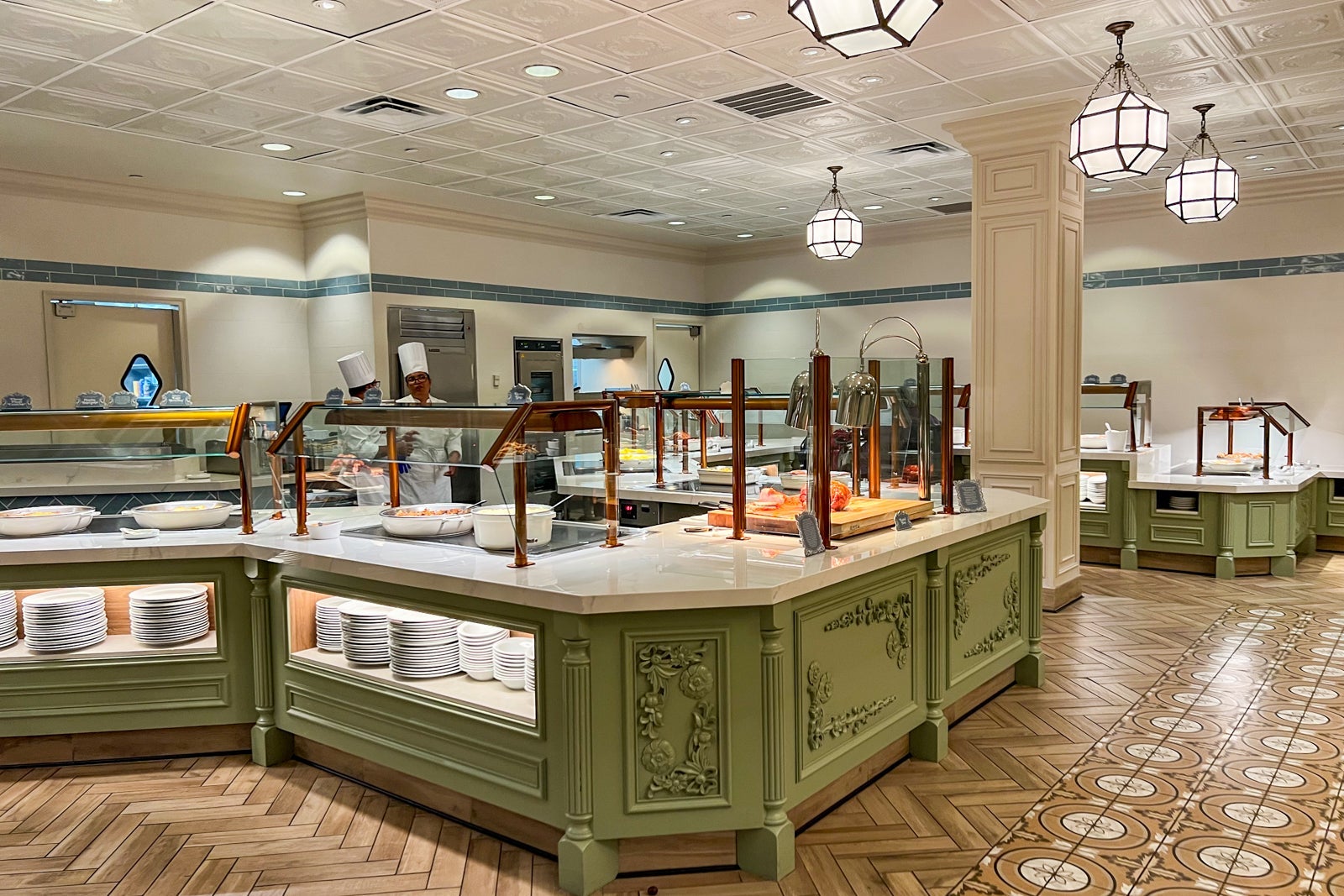 But while the food is good, it's the characters that are the starring attraction. Since the reopening of this restaurant, the characters consist of Cinderella, Mirabel, Tiana and Aladdin, who are there to help your kiddos learn to be "wish makers" like they are.