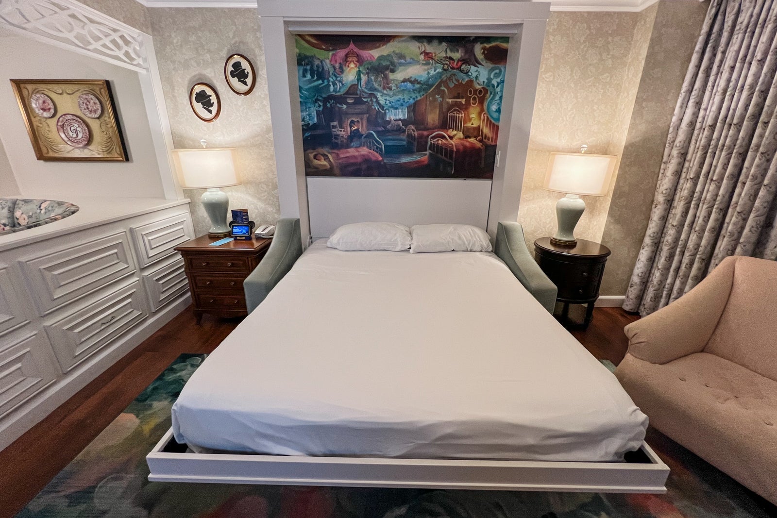 Larger suites, including one, two or three bedrooms, are also available, both when booked directly with Disney or via rented DVC points. We rented points to sleep up to five people in a one-bedroom DVC suite recently, and it worked out very well with a full kitchen, washer, dryer and both a pull-down Murphy bed and single bed under the TV available in the living room.