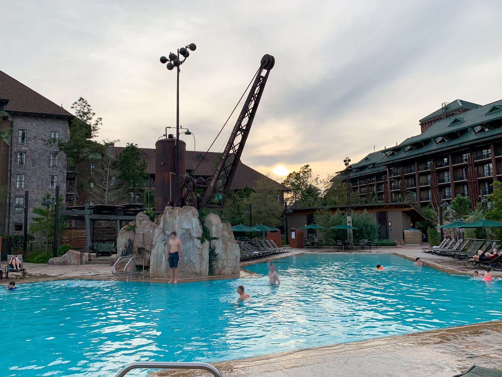 The main pool, the heated Copper Creek Springs Pool, is simply breathtaking. It's fed by a stream that flows from the massive waterfall at the back of the hotel. Truly, it's a picturesque scene as far as theme park pools go.