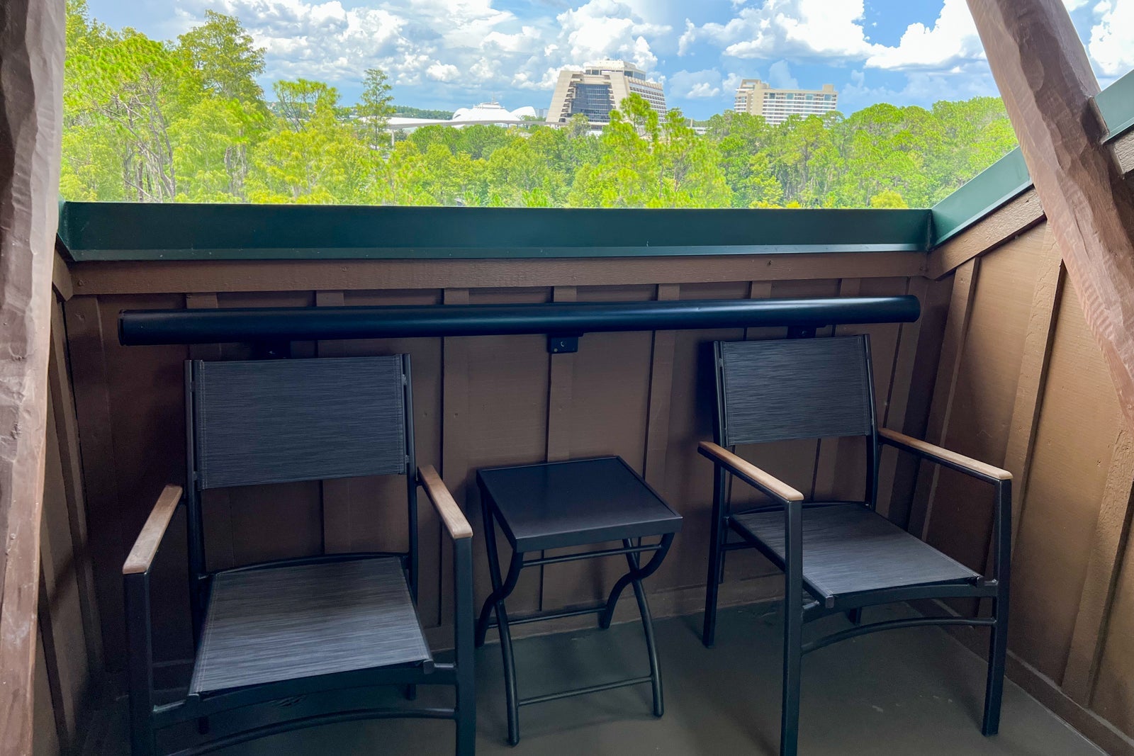 Some rooms at Disney's Wilderness Lodge, such as the one I was upgraded to, face the Magic Kingdom, so you'll enjoy views of the park's nighttime fireworks show from your furnished balcony.
