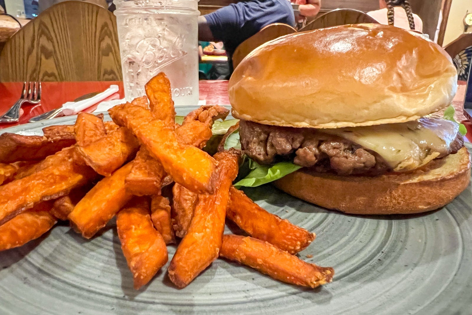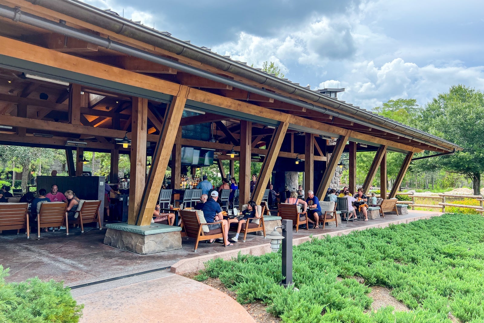 One of our favorite places to eat outdoors at Disney World is the lodge's casual quick-service restaurant, Roaring Fork. Open for breakfast, lunch and dinner daily, this grab-and-go venue dishes up comfort classics like chili, meat and veggie burgers, pulled pork sandwiches and french fries.