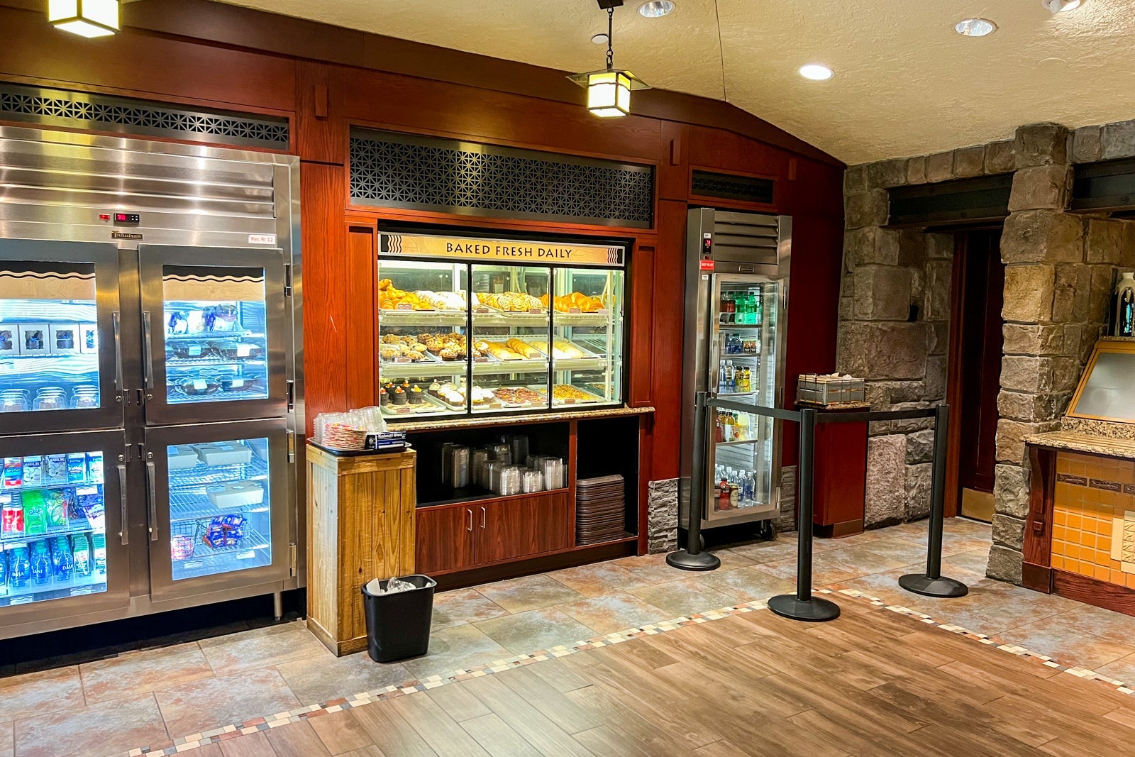 If you stay in the Old Faithful Club at Disney's Wilderness Lodge, you have access to a few breakfast items, plus snacks and drinks throughout the day and evening, in the lounge.