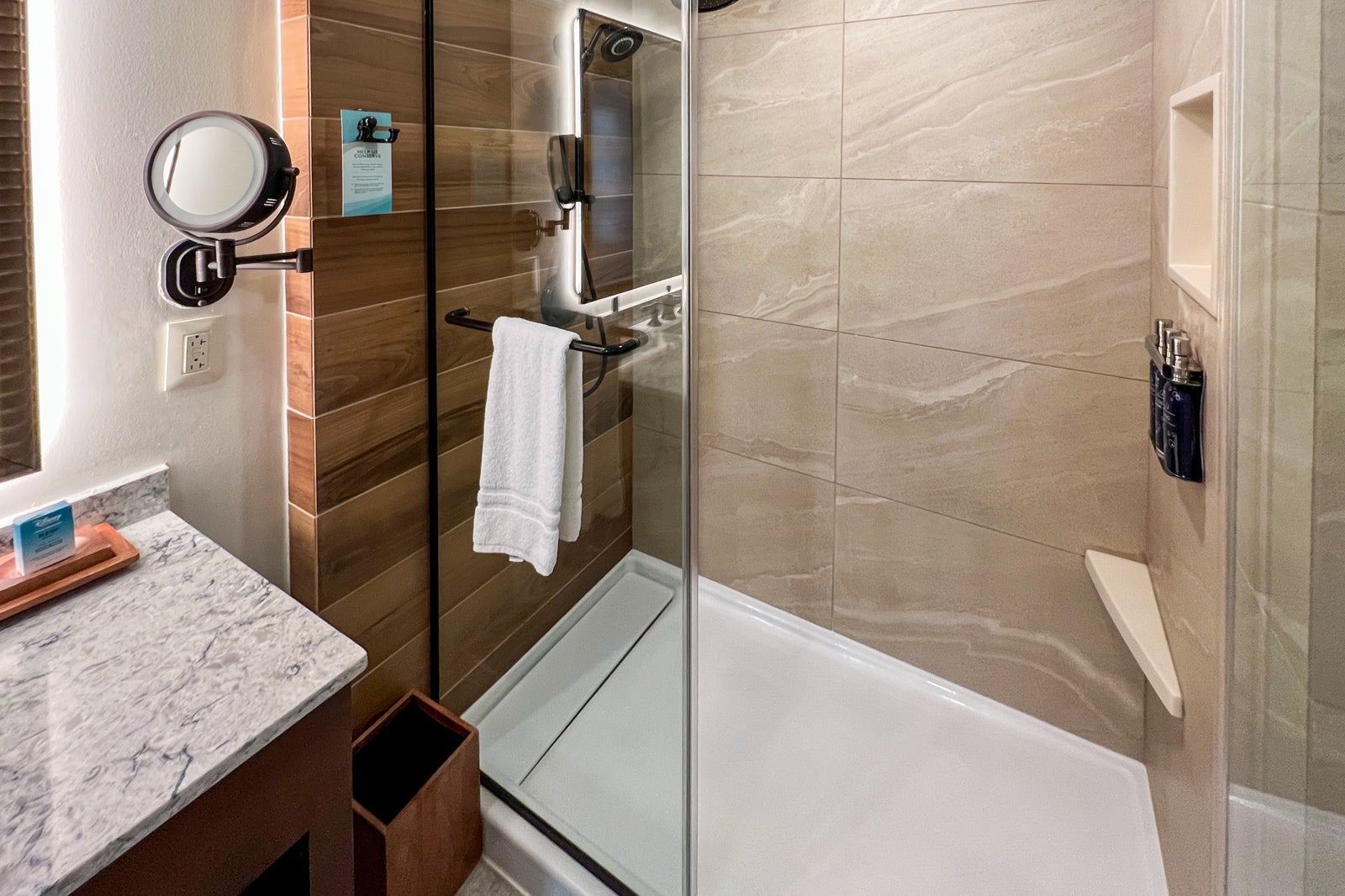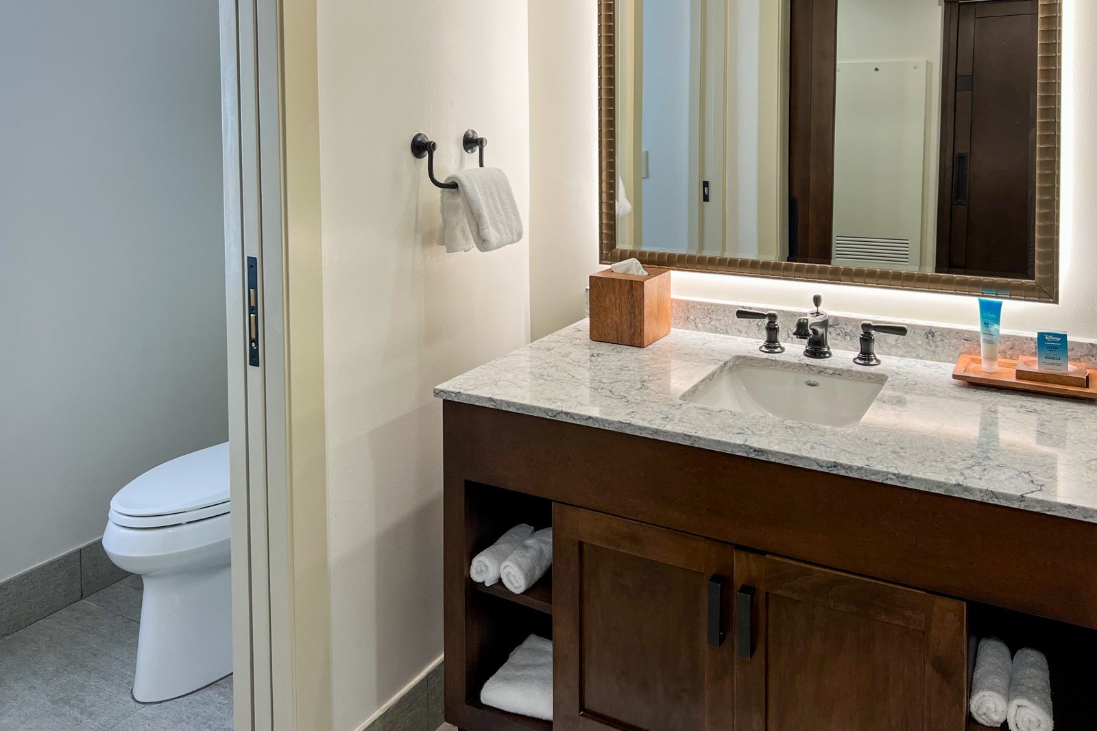 The bathrooms at Disney's Wilderness Lodge also benefited from a refresh. Mine had a walk-in shower and a single vanity with a toilet in its own small room that could be closed off with a pocket door.