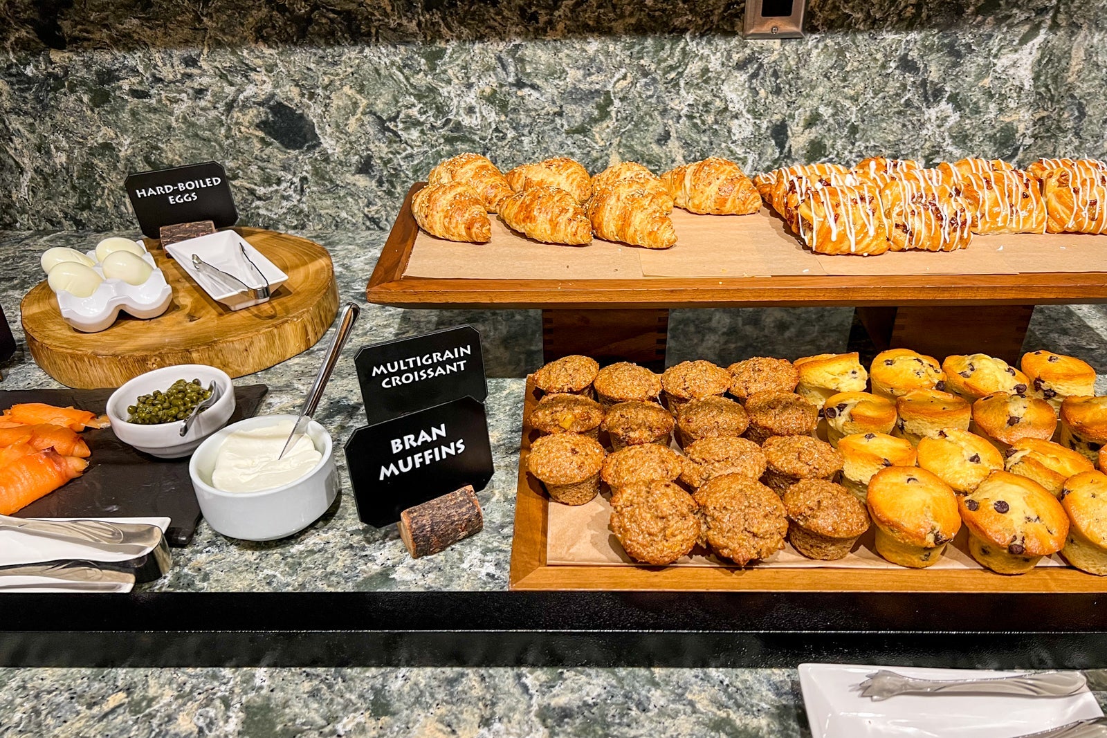 Breakfast each morning consisted of options such as muffins, croissants, bagels, hard-boiled eggs, lox, fruit, turkey bacon and French toast sticks. A couple of juices, iced tea and espresso beverages via a Nespresso machine were also available.