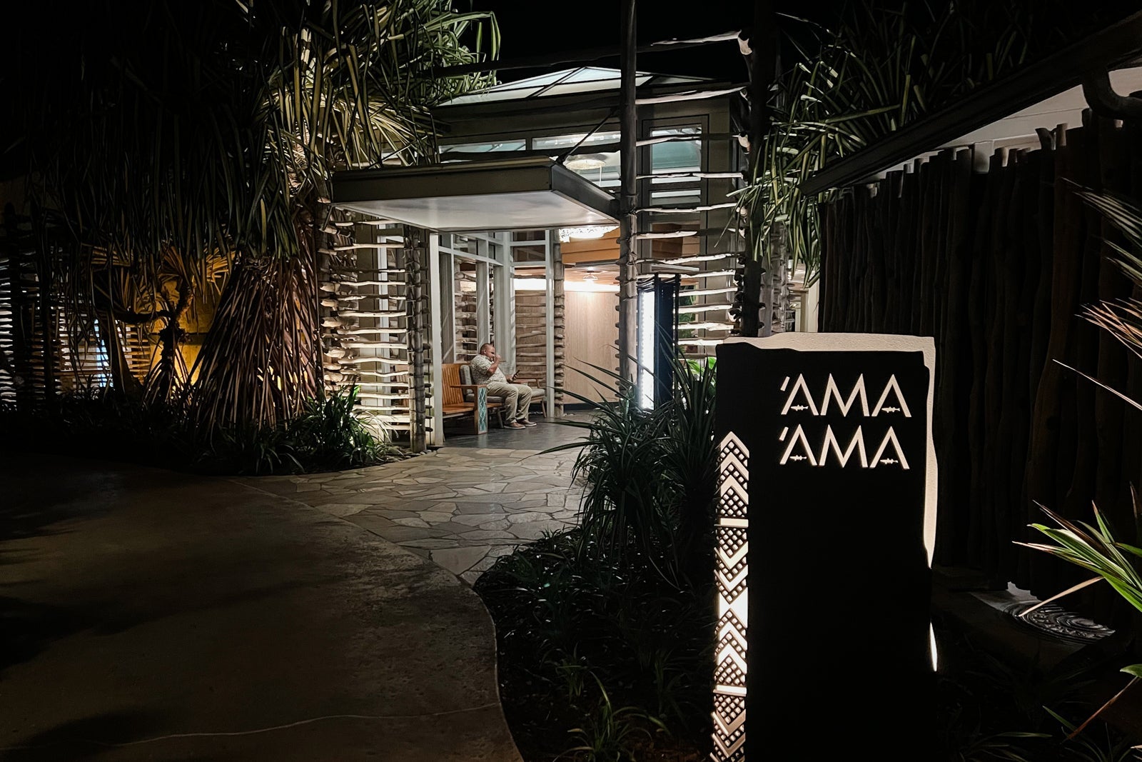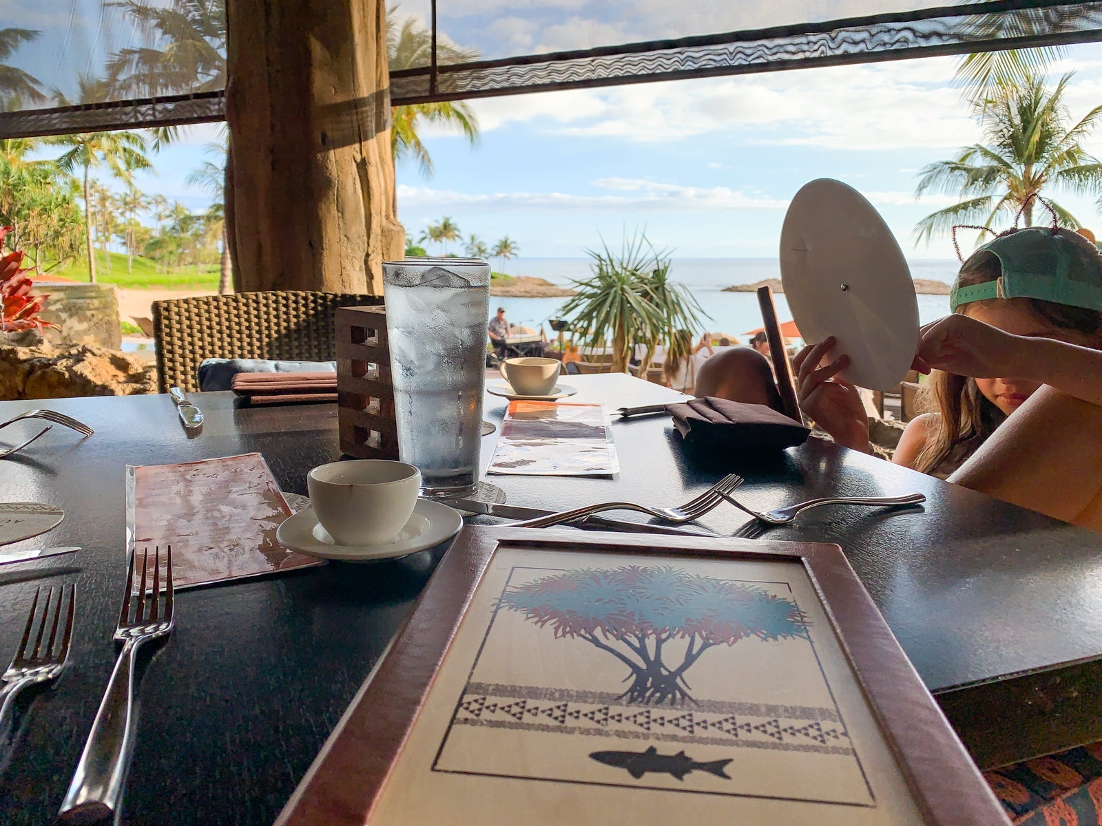 The nicest restaurant at Aulani is the beachside, open-air Ama Ama. We ate there on a trip a few years ago and certainly enjoyed the food. We had reservations to return on this trip, but once we learned that it is now a four-course meal that costs $125 per person ($55 for kids 3 to 9 years old), we opted to skip a return visit.