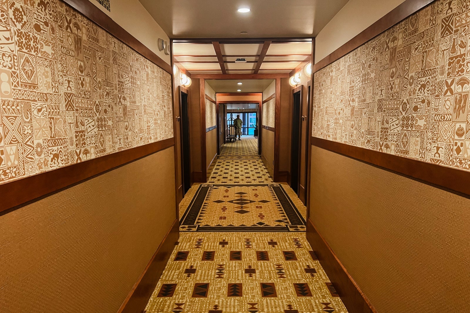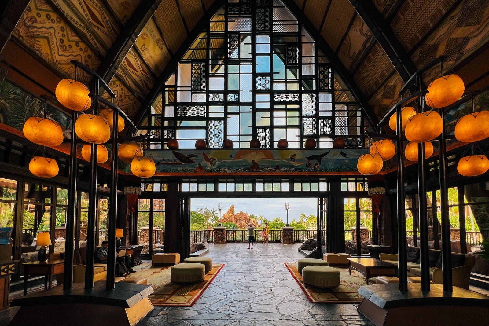 Disney's Aulani isn't just a Disney-ized version of Hawaii; instead, the architecture and decor lean intentionally into Hawaiian patterns, culture and tradition. For example, the lobby has a compass rose embedded in the floor, but instead of the North, South, East and West directions you may expect to find, the directions correspond to what was traditional to the Hawaiians: toward the sea, to the mountains, etc. Additionally, keep your eyes on the carpet for the outlines of the leaves of the native taro plant.