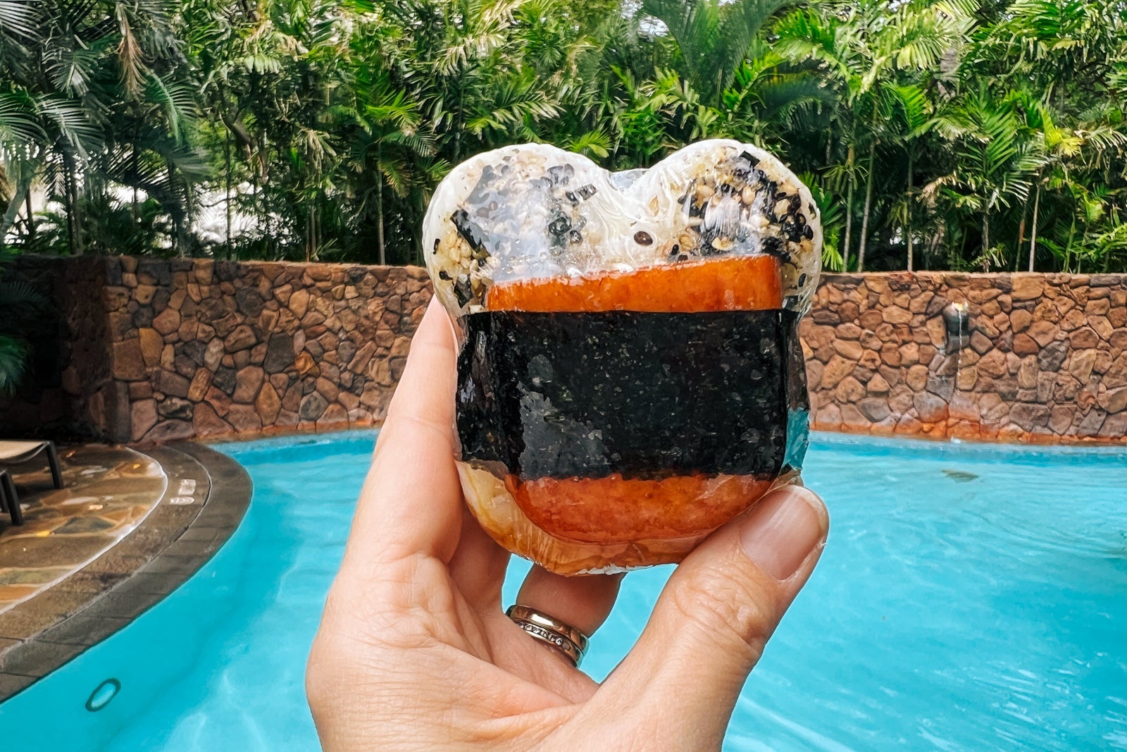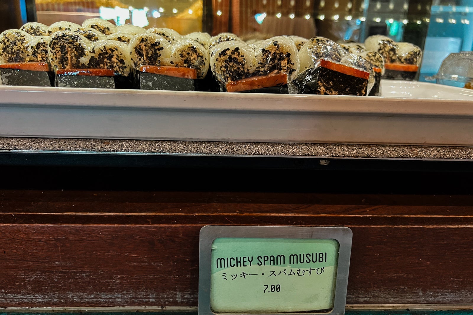 At lunch, you can get Mickey-shaped Spam musubi, which I think is pretty fantastic. It does sell out, so don't wait until too late in the day if you want one.