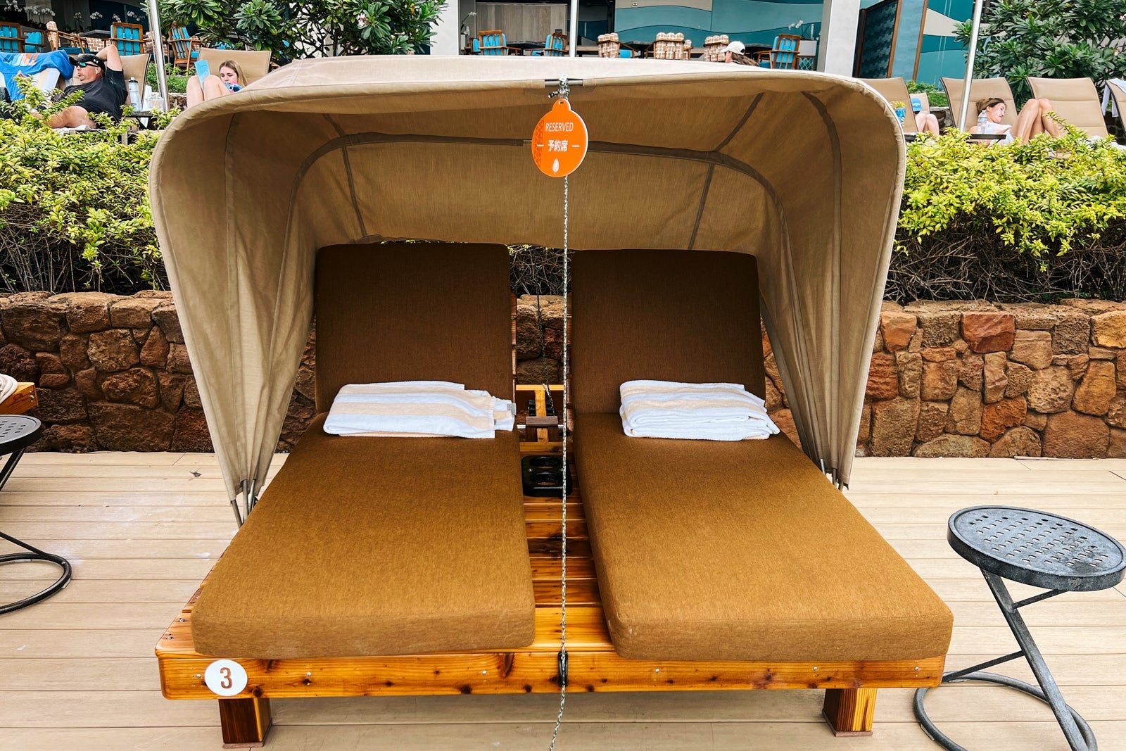 Pool chairs are hot commodities during the middle of the day, and you need to pick up a colored wristband at the towel hut daily. Unfortunately, if you want a "good" chair spot, this is one of those places where you probably need to either start your pool day early or wait for the first round of people to start to leave. Cabanas and covered chairs are available but pricey, so expect to spend a few hundred dollars per day if you want to go that route.