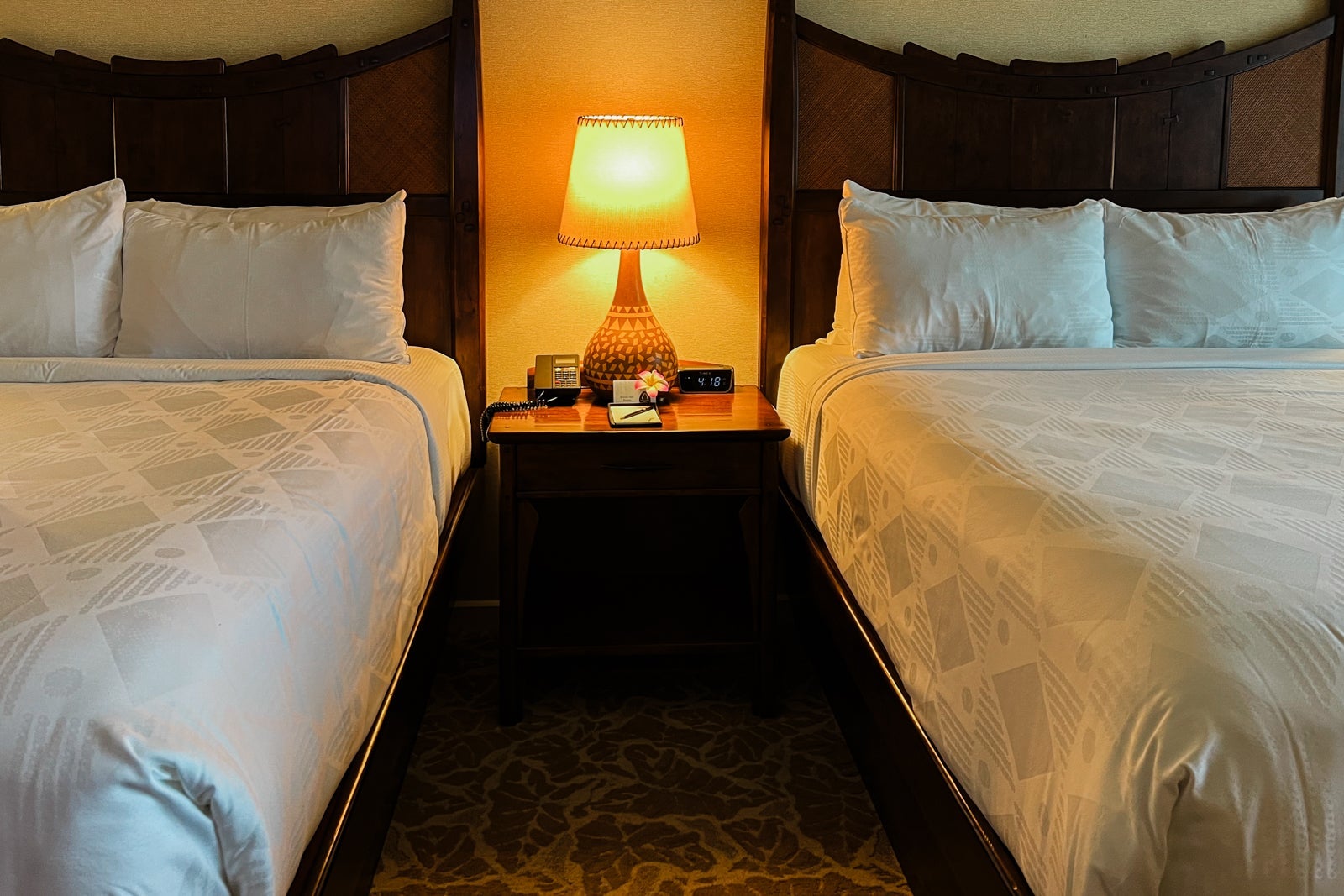 The two queen beds were comfortable, and housekeeping was prompt each day. I would have appreciated additional outlets by the bed, but I'll take that trade-off for the very cool air conditioning that worked better than at many of the hotels we have visited in Hawaii.