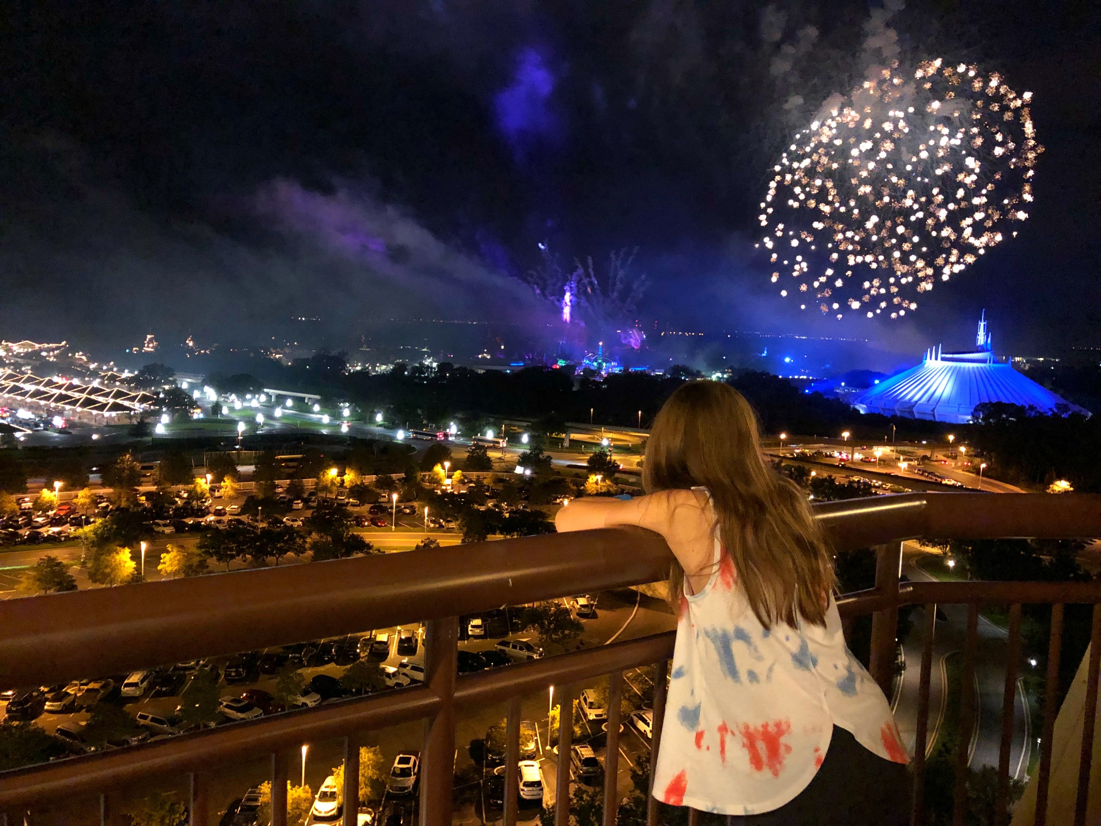 We splurged on this view when my kids were younger since we knew the littlest one in our crew wouldn't last in the park until Main Street U.S.A.'s fireworks go off around closing time. It's not an upcharge we typically go for now that the kids are older, but it was a true treat to watch the show from our balcony with a glass of wine as the accompanying soundtrack played on our in-room TV.