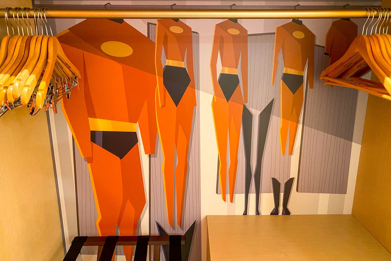 I won't give away all of these not-so-hidden gems, as they are fun to stumble upon, but expect to find some memorable details inspired by "The Incredibles," including a themed closet with hanging super suits.