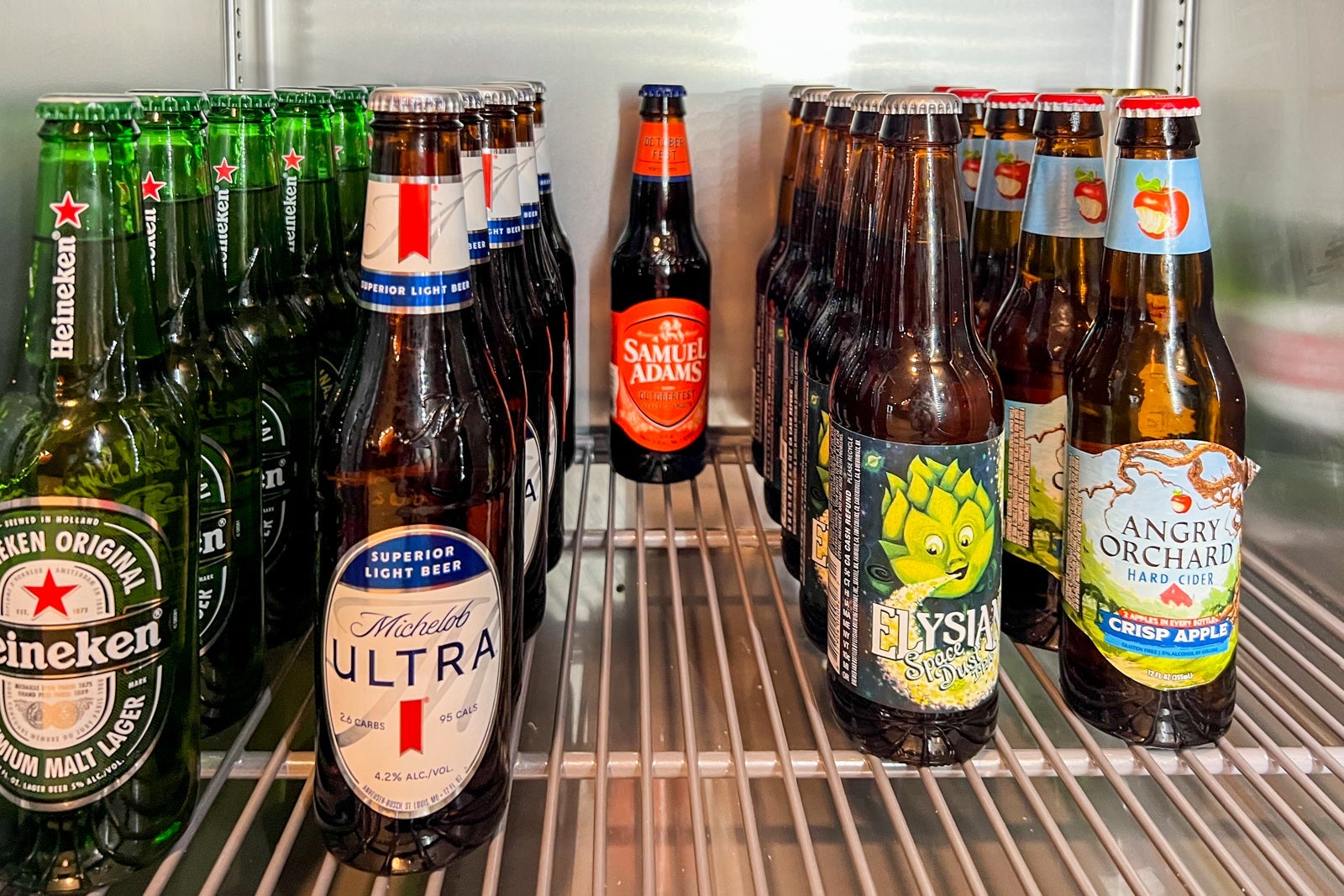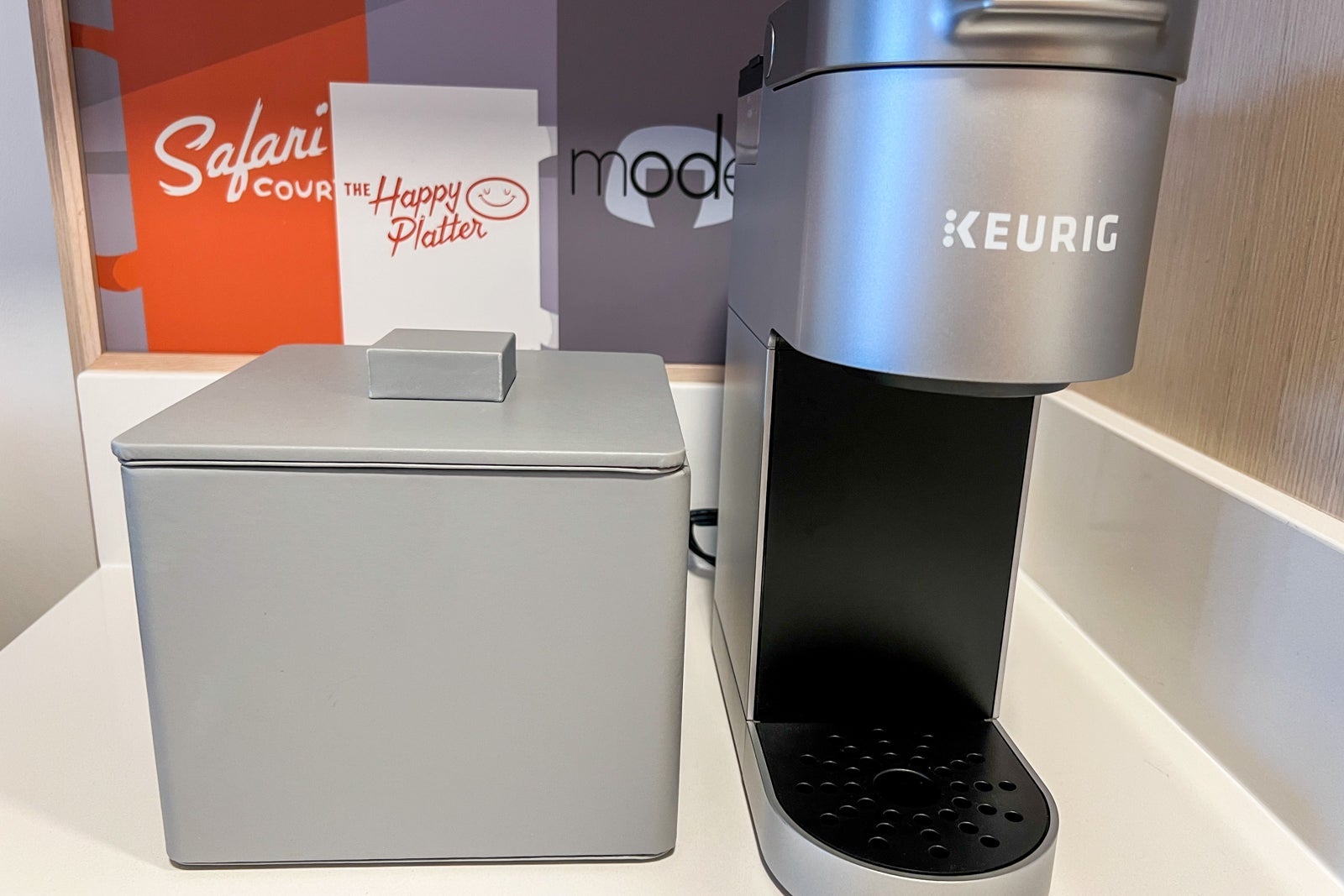 Instead, you'll now find a mix of white, beige and light gray hues with colorful pops of orange and blue. As an added bonus, each space also comes equipped with all the modern-day amenities you could need, such as multiple outlets, a Keurig coffee maker and a glass-enclosed shower with a rainfall shower.