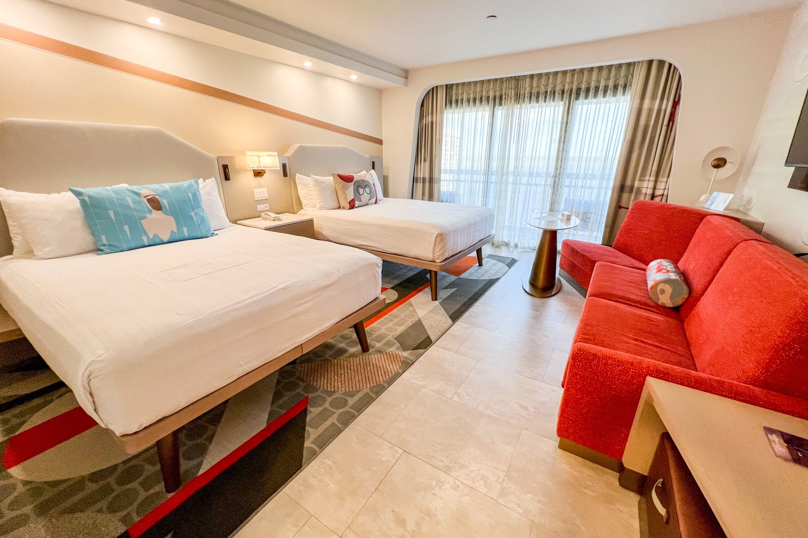 If you're like us and have older kids who can stay up to watch the fireworks in the park, don't worry about springing for a theme park-facing room, especially if you're traveling with multiple people. We prefer paying a little more for an atrium room that can sleep up to five guests (i.e., one with a sofa that easily converts to a handy single bed) instead of a space with a view of the fireworks.
