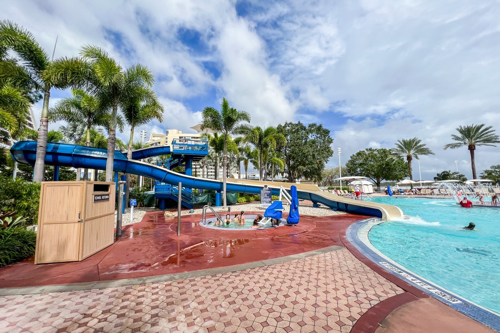 Open every day from 10 a.m. to 10 p.m., the large activity pool (known as the Feature Pool) has a 17-foot waterslide and lifeguards.