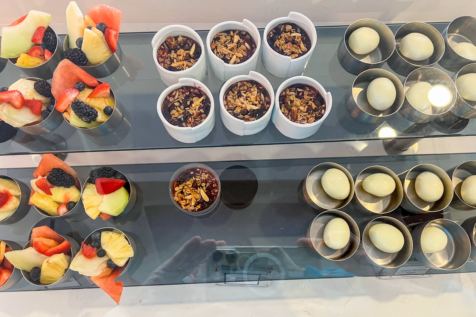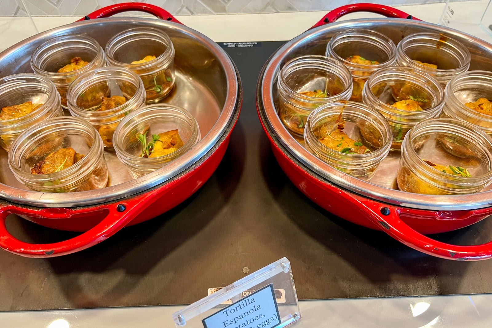 During our recent stay, breakfast items included tortillas with potato, egg and onion; small pieces of avocado toast; fried chicken biscuits with bacon pepper jam; shrimp and grits; pastries; and fruit. Much of the food is prepared in the California Grill kitchen located a few floors above, so you can expect some pretty fantastic bites when you visit.