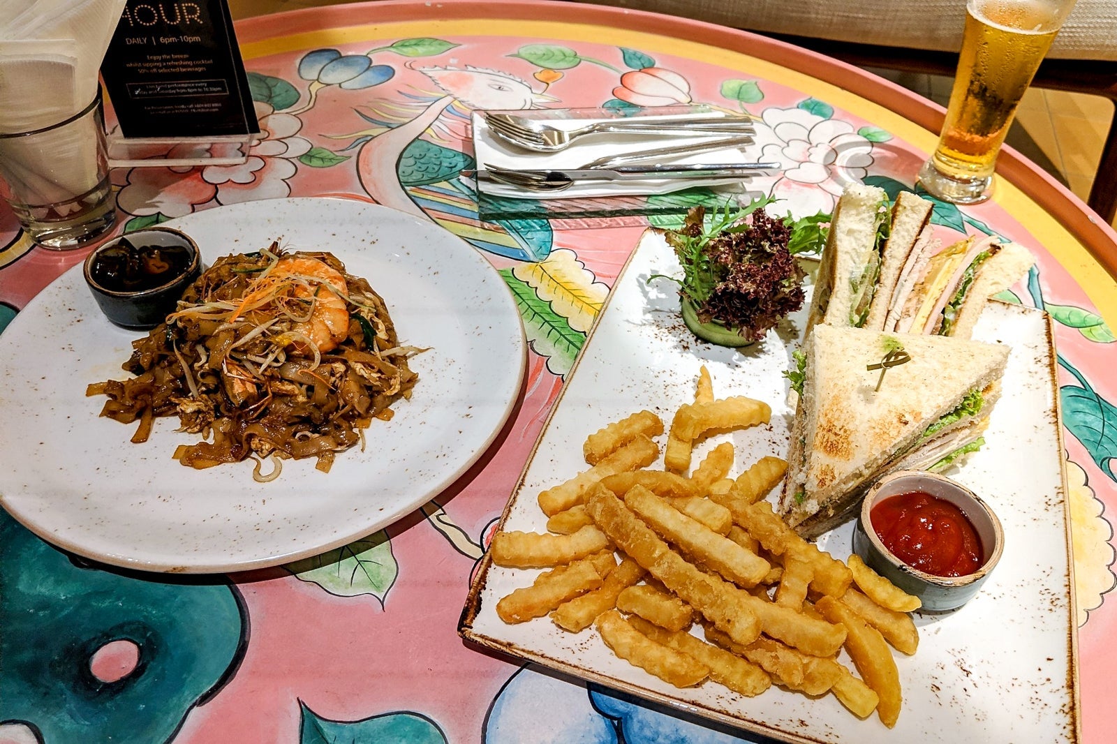 We'd planned to eat dinner at the resort on Saturday night, but found that Makan Kitchen was closed because of a full-moon event. So we decided to order some food from the Axis Lounge. We shared a club sandwich with french fries and a Malaysian fried noodle dish. Both dishes were fresh, filling and better than I expected from a lounge.