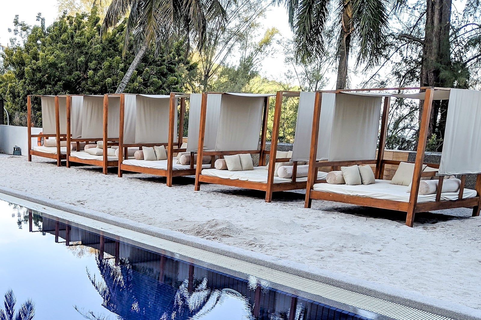 There's a large blue-tiled pool surrounded by pool chairs and six first-come, first-serve cabanas. A variety of seating is available in both the shade and sun, but the cabanas tend to get claimed early each day.