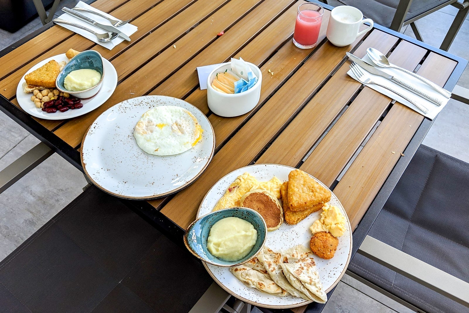 With the Diamond elite status that comes with the Hilton Honors Aspire Card from American Express, we received daily breakfast at Makan Kitchen. When we arrived for breakfast at 10am on Saturday morning, the breakfast area was chaotic and we were seated at a dirty table without utensils. We had a better experience when we ate breakfast around 8am on Sunday morning.