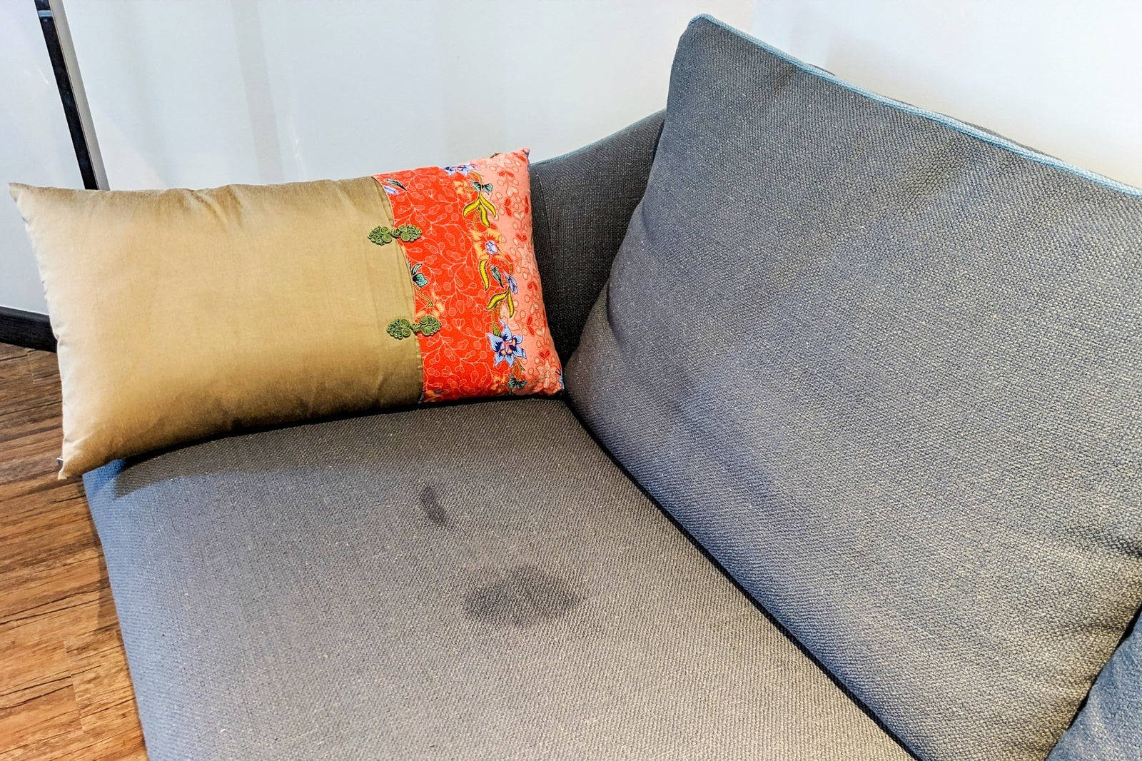 Sadly, the couch had a large noticeable stain. We thought about calling to complain but decided there wasn't much that could be done besides replace the couch -- which seemed like an unnecessary request. So we just tried to ignore it.