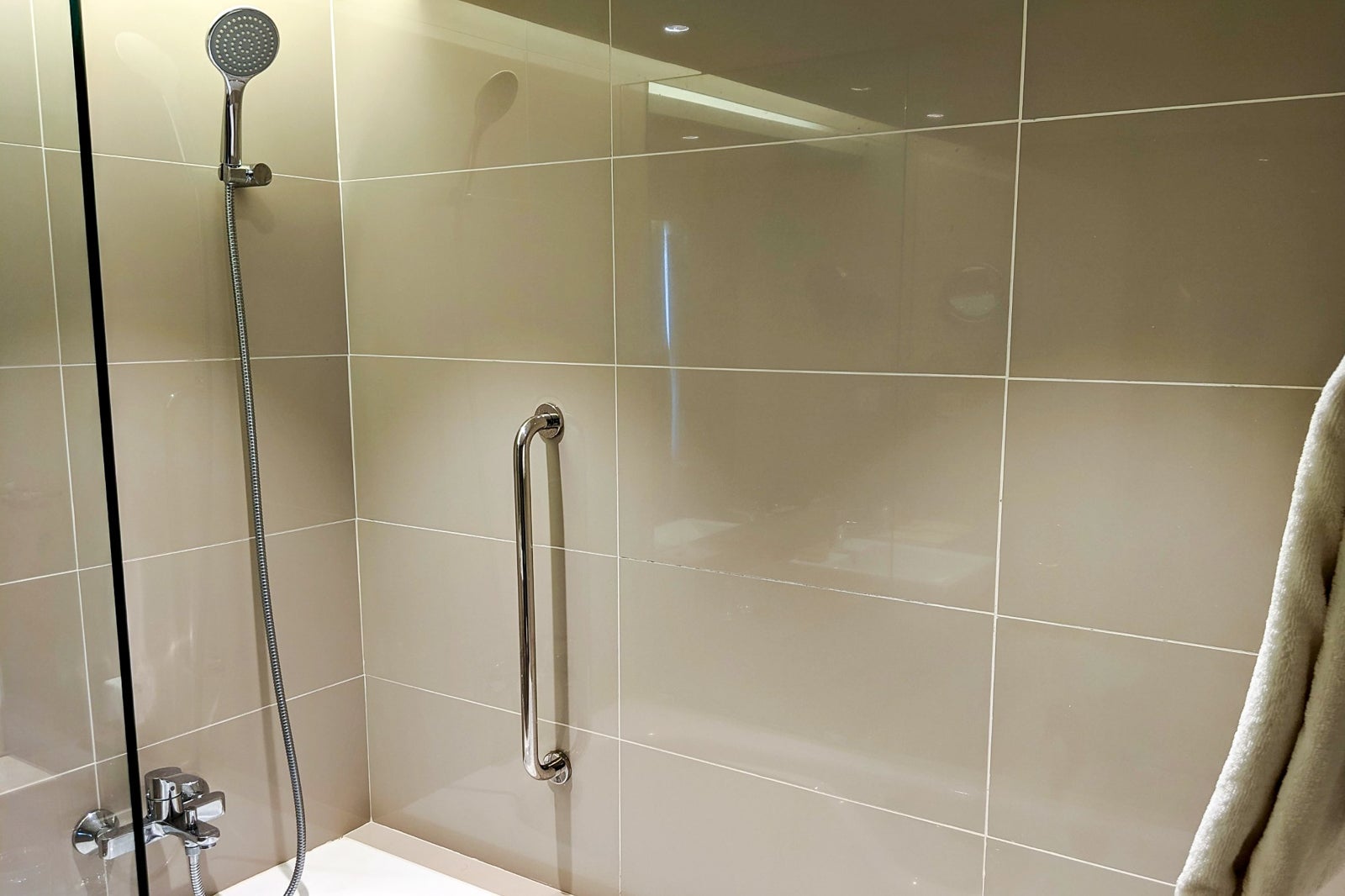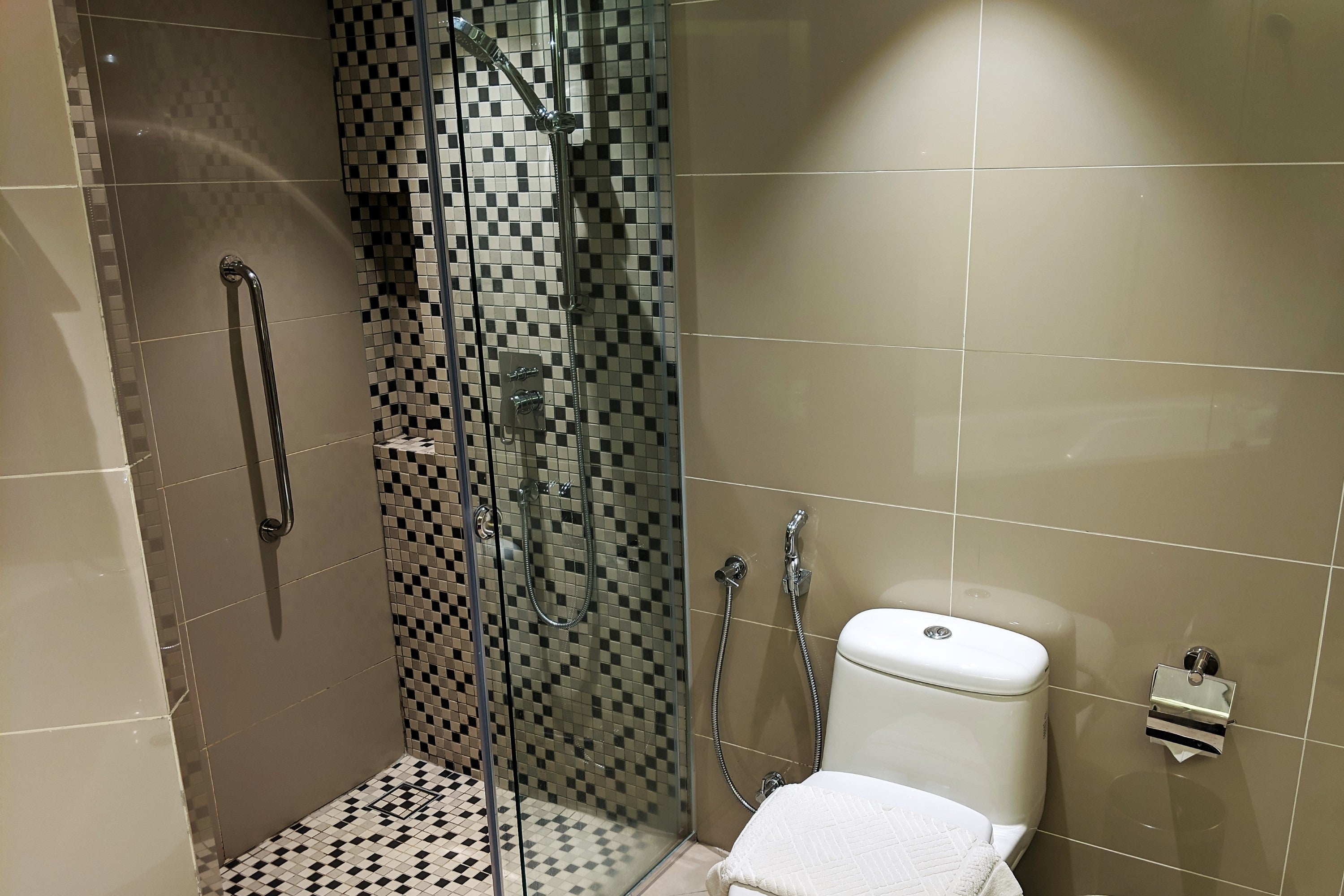 And next to the bathtub is a shower stall with a handheld showerhead and an overhead rainfall shower head. Although the rainfall shower was not quite up to Park Hyatt Beijing standards, it was a lot better than the rainfall shower head we'd experienced the night before at the JW Marriott Medan.