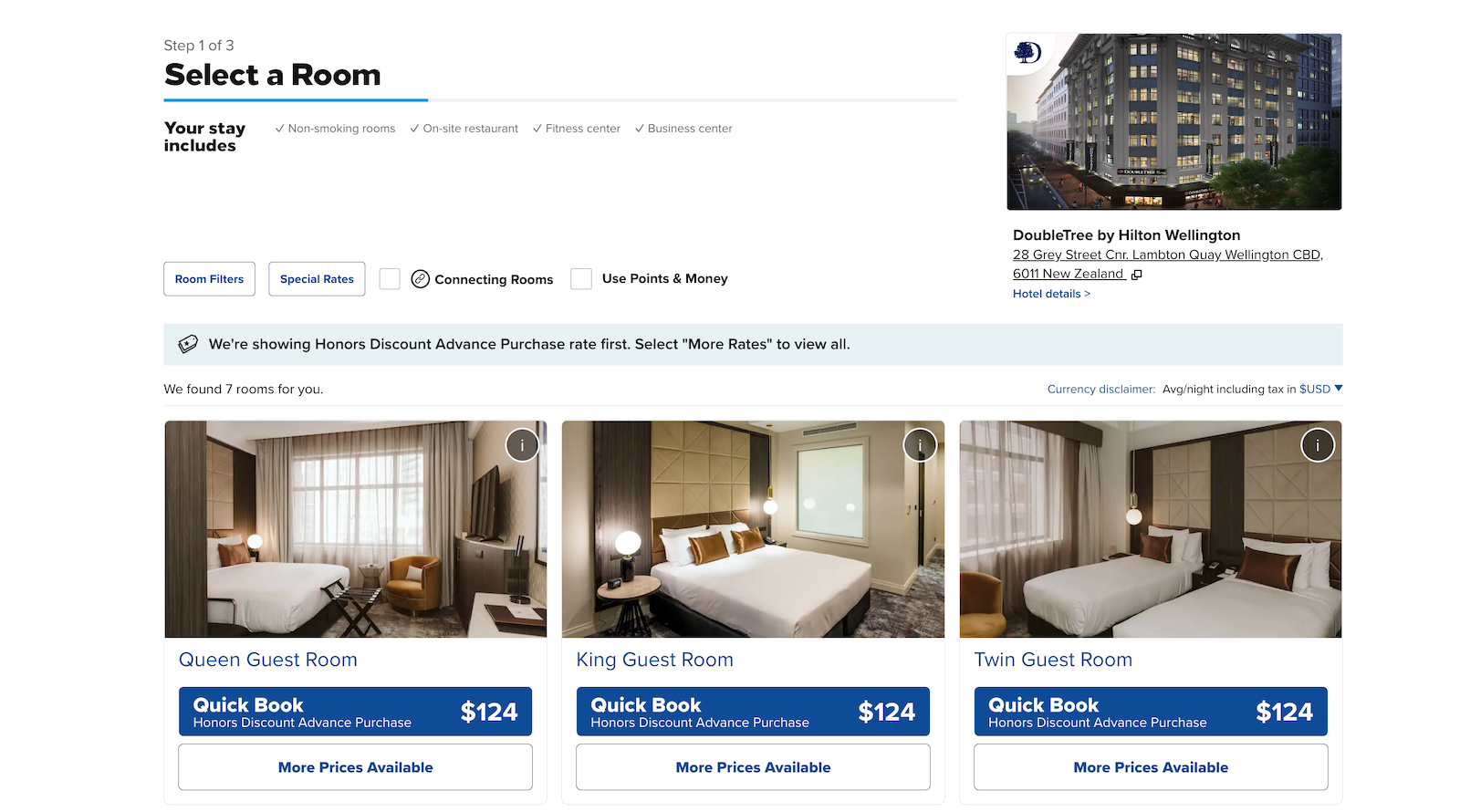Because I happened to be in Wellington right around a school holiday, the room rates during my stay were around twice what they normally are and I was only able to book a room with twin beds rather than a queen or king.