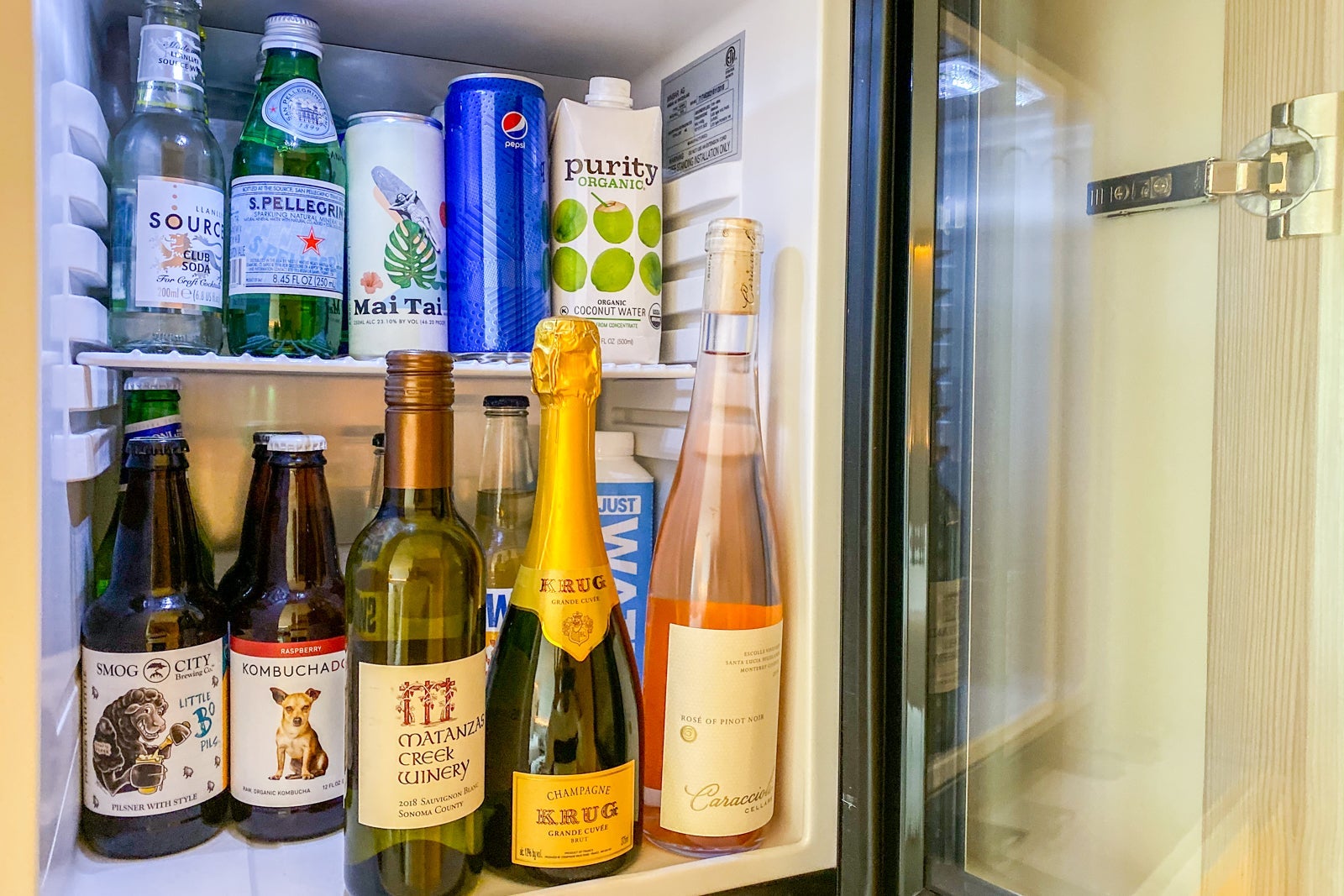 The room had a complimentary Nespresso machine and a minibar with the expected sky-high prices, so we didn't take anything from there and instead went to a corner store across the street to buy snacks and sodas.