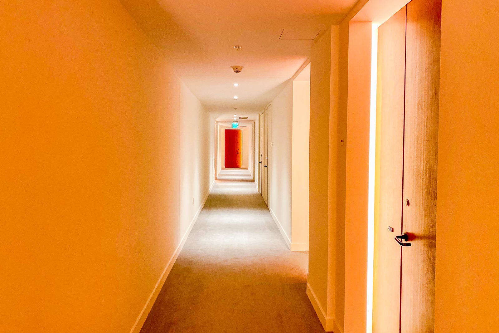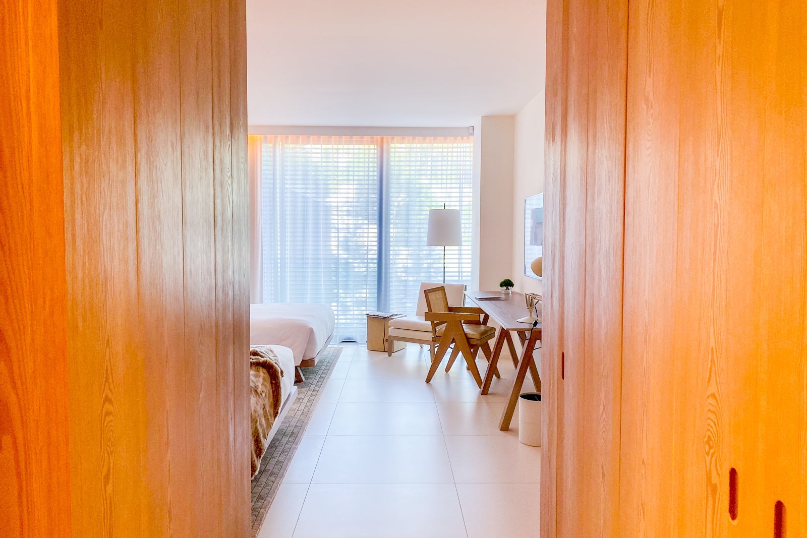 It instantly reminded me of my room at The Bodrum Edition, where I'd just stayed a few months before. Upon entering the room, there was a hallway with closets, minibar and, on the other side, the entrance to the bathroom.