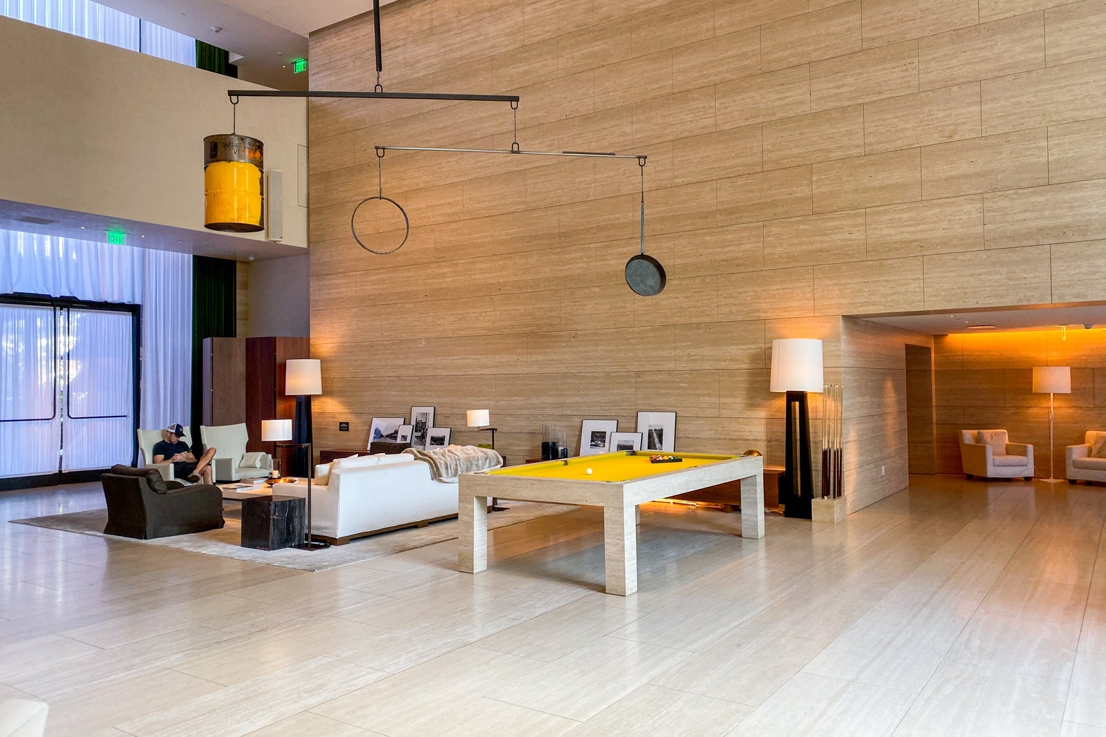 Besides the pool deck, the amenity offering was more in line with a typical city hotel. The lobby had several pieces of comfortable furniture on which guests could sip drinks from the Lobby Bar and socialize. There was also a marble pool table finished with bright yellow felt — it was definitely a conversation piece, and I observed hip Angelenos playing pool there each night of my stay.